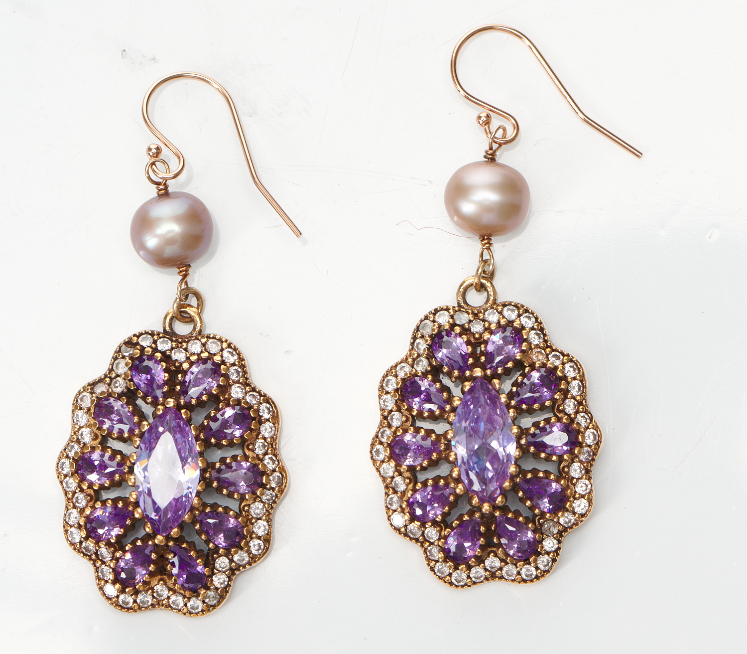 A PAIR OF PEARL AND PASTE SET EARRINGS IN SILVER GILT, TO SHEPHERD HOOK FITTINGS