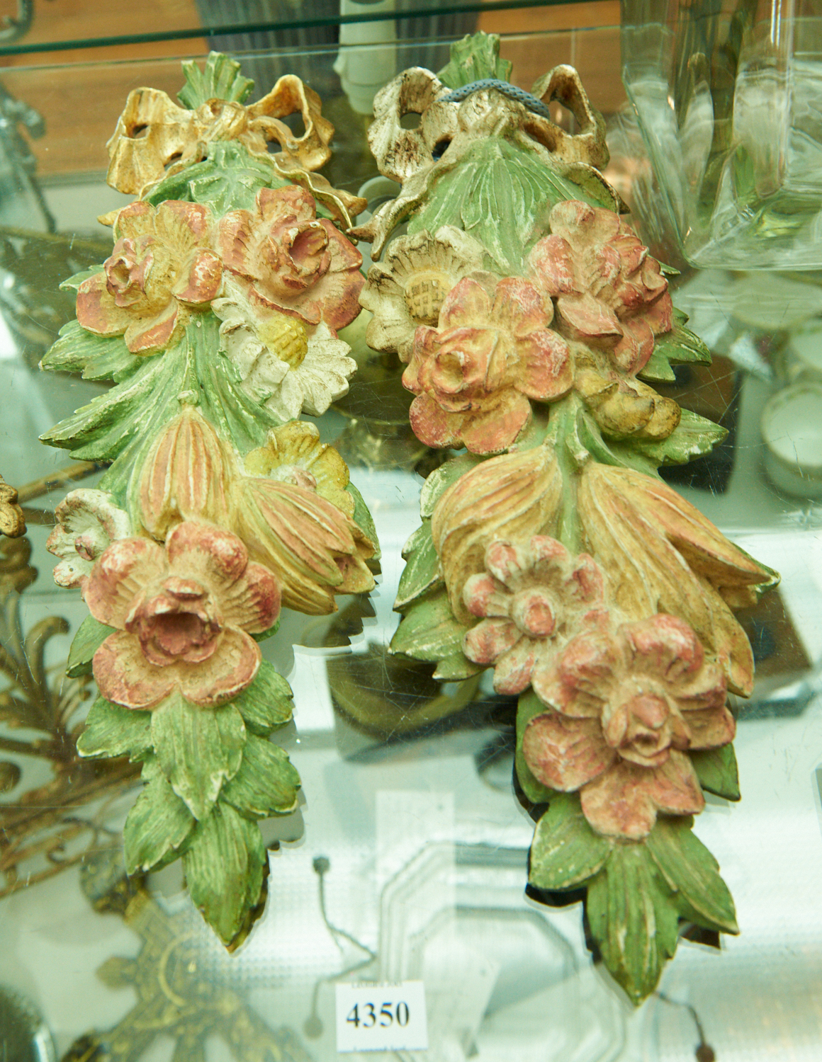 A PAIR OF FLORAL WOODEN WALL APPLIQUES (40 CM H), LEONARD JOEL LOCAL DELIVERY SIZE: SMALL