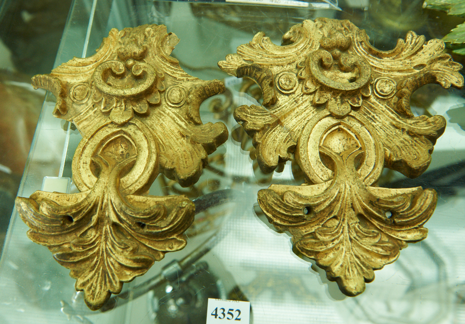 A PAIR OF GILDED WALL APPLIQUES (A/F) (21 CM H), LEONARD JOEL LOCAL DELIVERY SIZE: SMALL