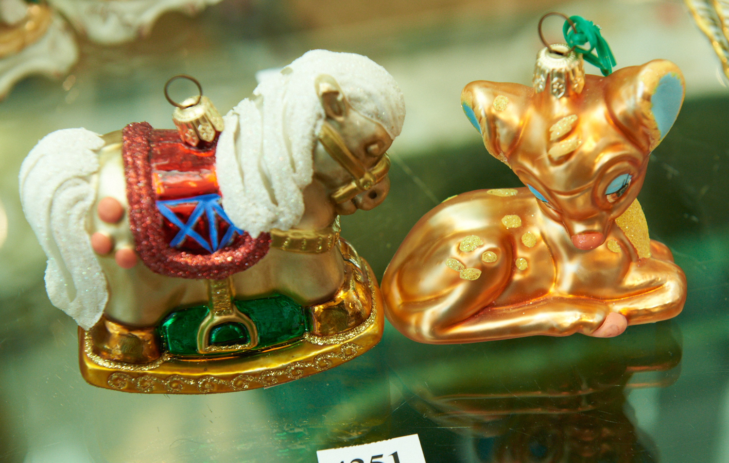 A PAIR OF MID CENTURY CHRISTMAS DECORATIONS (9.5 CM W), LEONARD JOEL LOCAL DELIVERY SIZE: SMALL