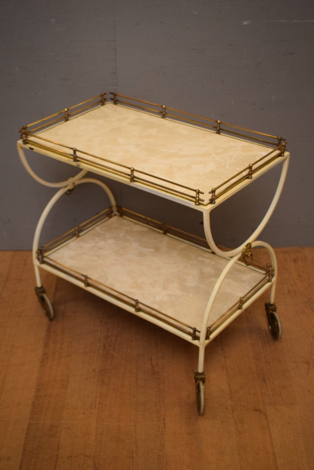 A MID-CENTURY AUTO TROLLEY WITH LION MOTIF (74H x 76W x 49D CM) (LEONARD JOEL DELIVERY SIZE: LARGE)