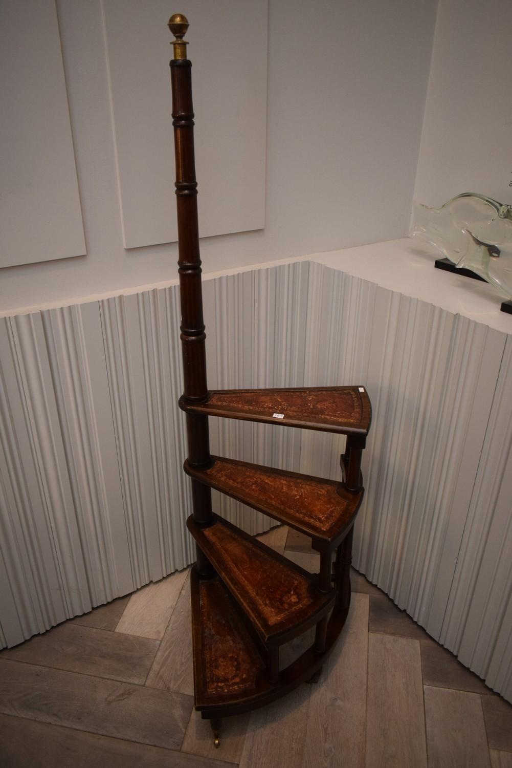 AN ANTIQUE SET OF LIBRARY STEPS WITH LEATHER INLAY (160H x 65D CM) (LEONARD JOEL DELIVERY SIZE: LARGE)