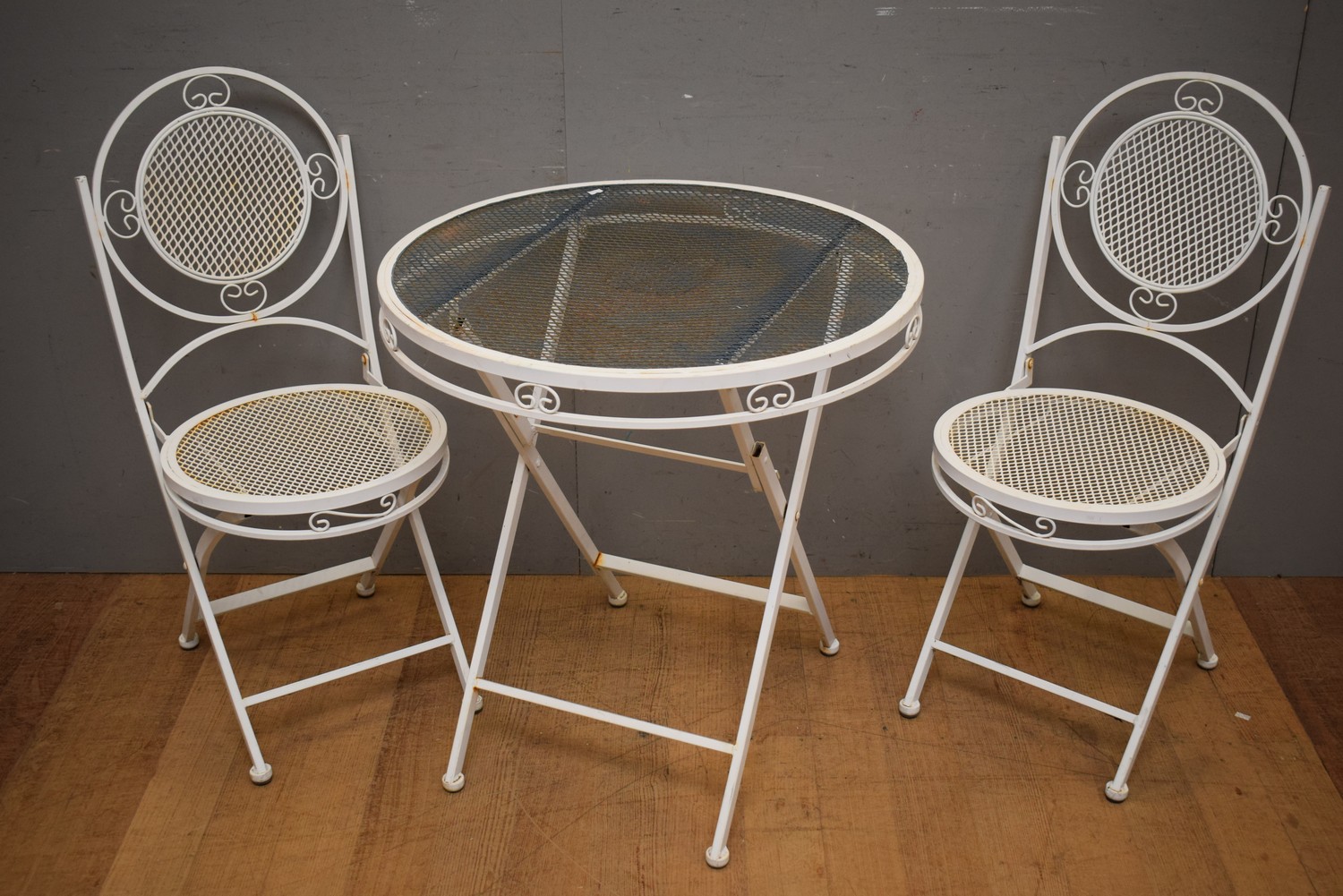 A METAL THREE PIECE OUTDOOR SETTING (H74 X W72 CM) (LEONARD JOEL DELIVERY SIZE: LARGE)