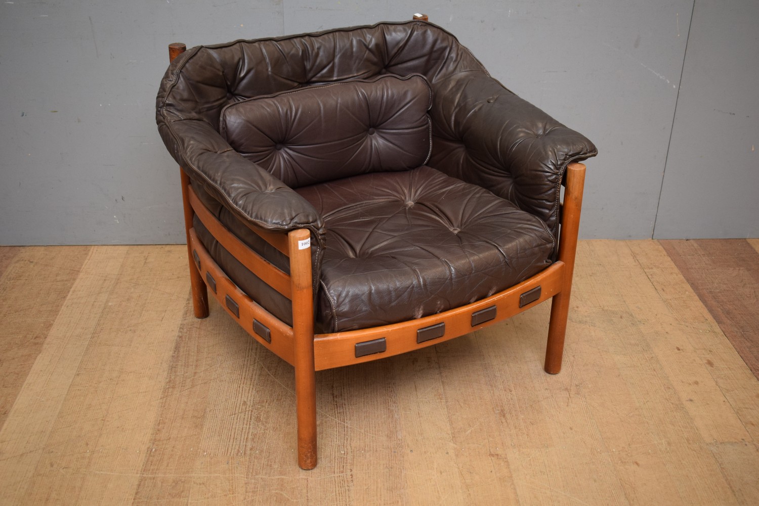 A BROWN LEATHER ARMCHAIR BY ARNE NORELL FOR COJA, 1960S, DENMARK (72H x 84W x 71D CM) (LEONARD JOEL DELIVERY SIZE: LARGE)