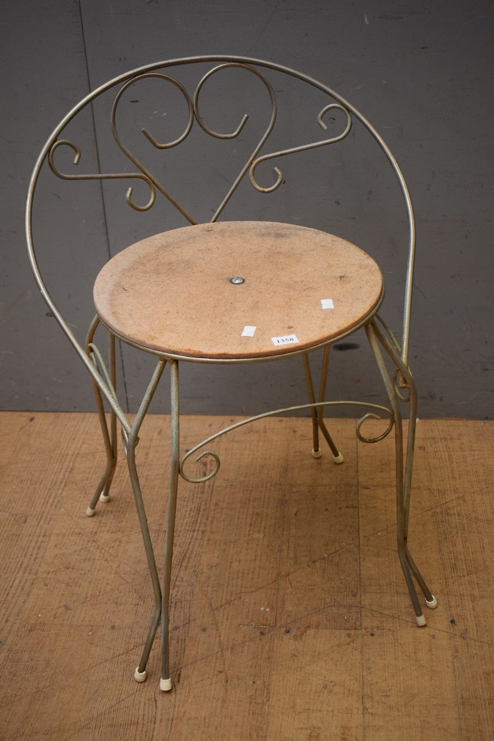 A VINTAGE METAL DRESSING CHAIR (A/F) (H61 X W45 X D38 CM) (LEONARD JOEL DELIVERY SIZE: SMALL)