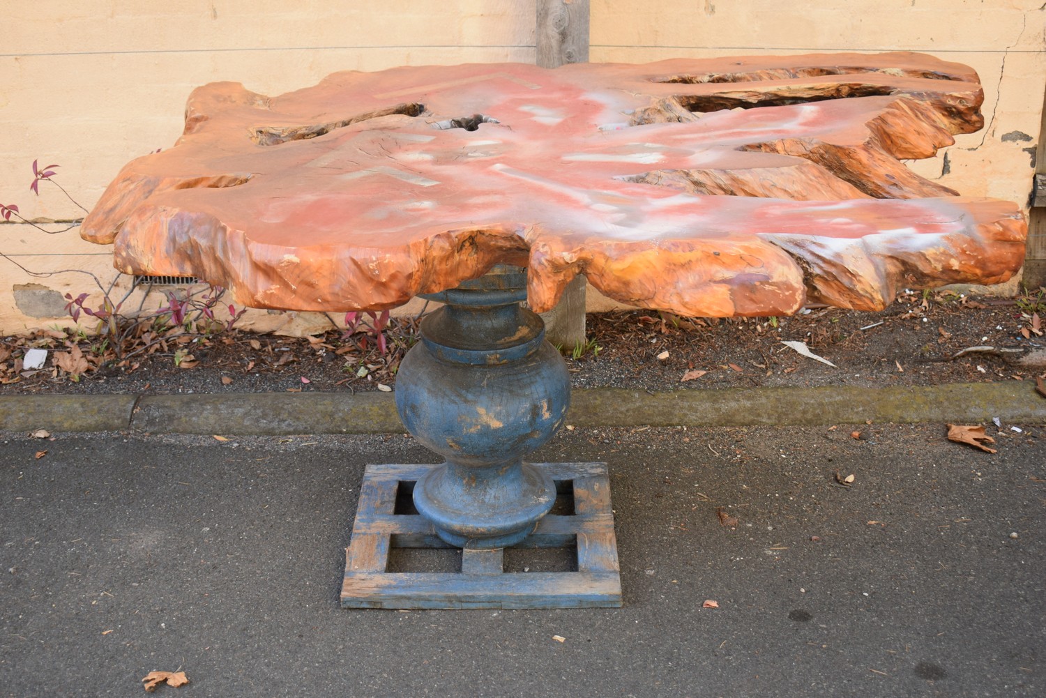 A SUBSTANTIAL NATURAL FORM TIMBER DINING TABLE (A/F) (H86 X W160 X D120 CM) (PLEASE NOTE THIS HEAVY ITEM MUST BE REMOVED BY CARRIERS AT THE CUSTOMER'S EXPENSE. LEONARD JOEL STAFF CANNOT ASSIST CARRYING THIS ITEM)