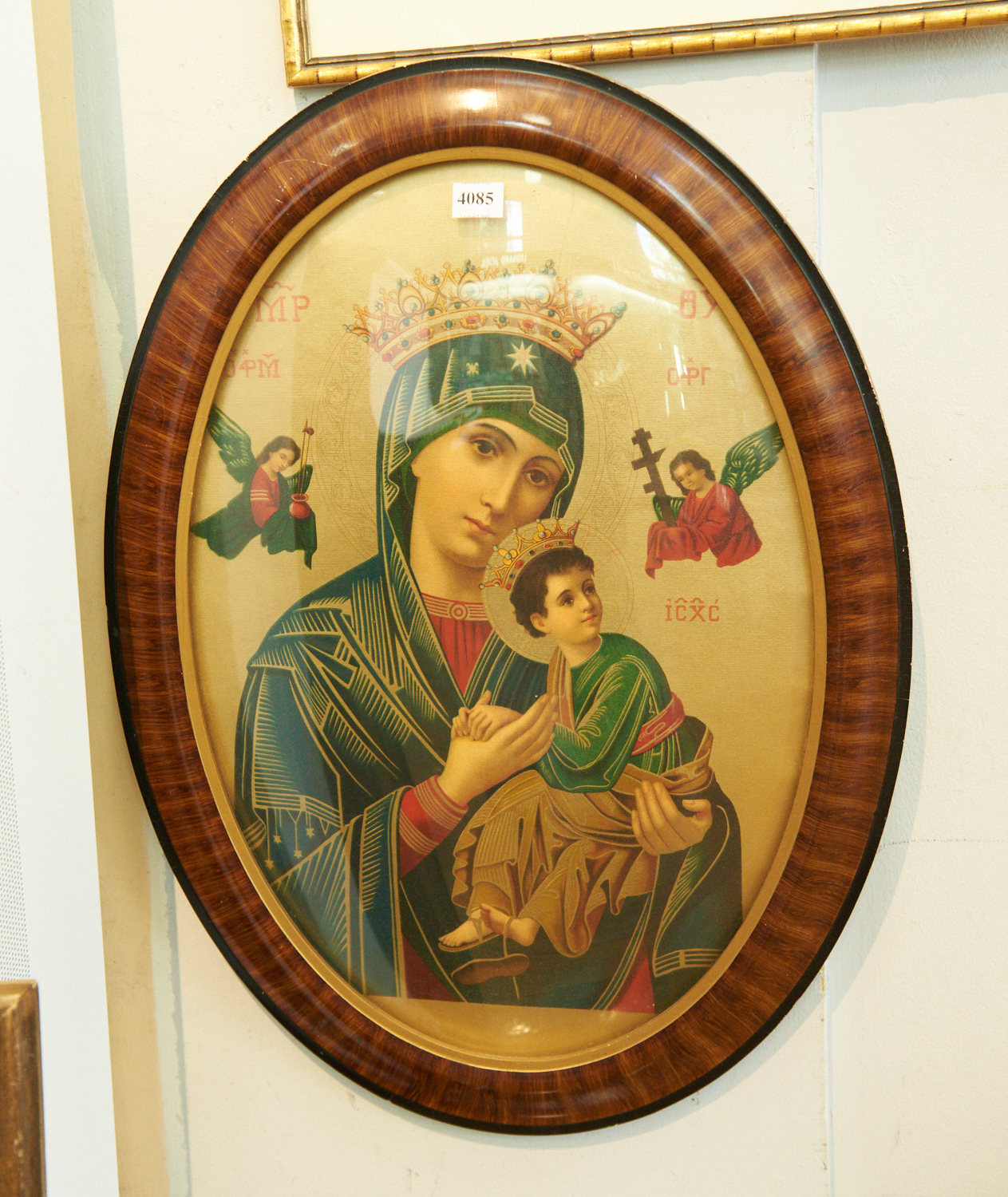 A MOTHER AND CHILD PRINT IN CONVEX OVAL FRAME H.59CM, LEONARD JOEL LOCAL DELIVERY SIZE: SMALL
