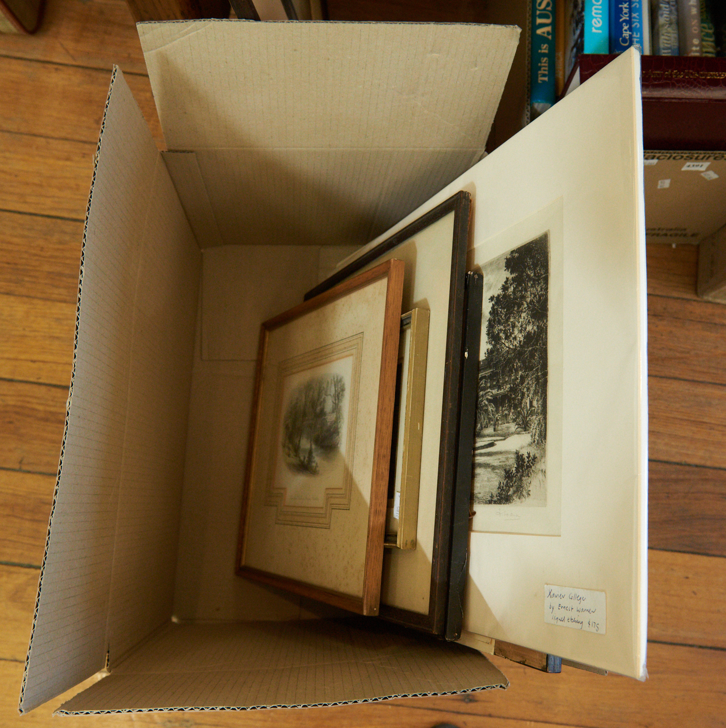 A BOX OF AUSTRALIAN ETCHINGS, LEONARD JOEL LOCAL DELIVERY SIZE: SMALL