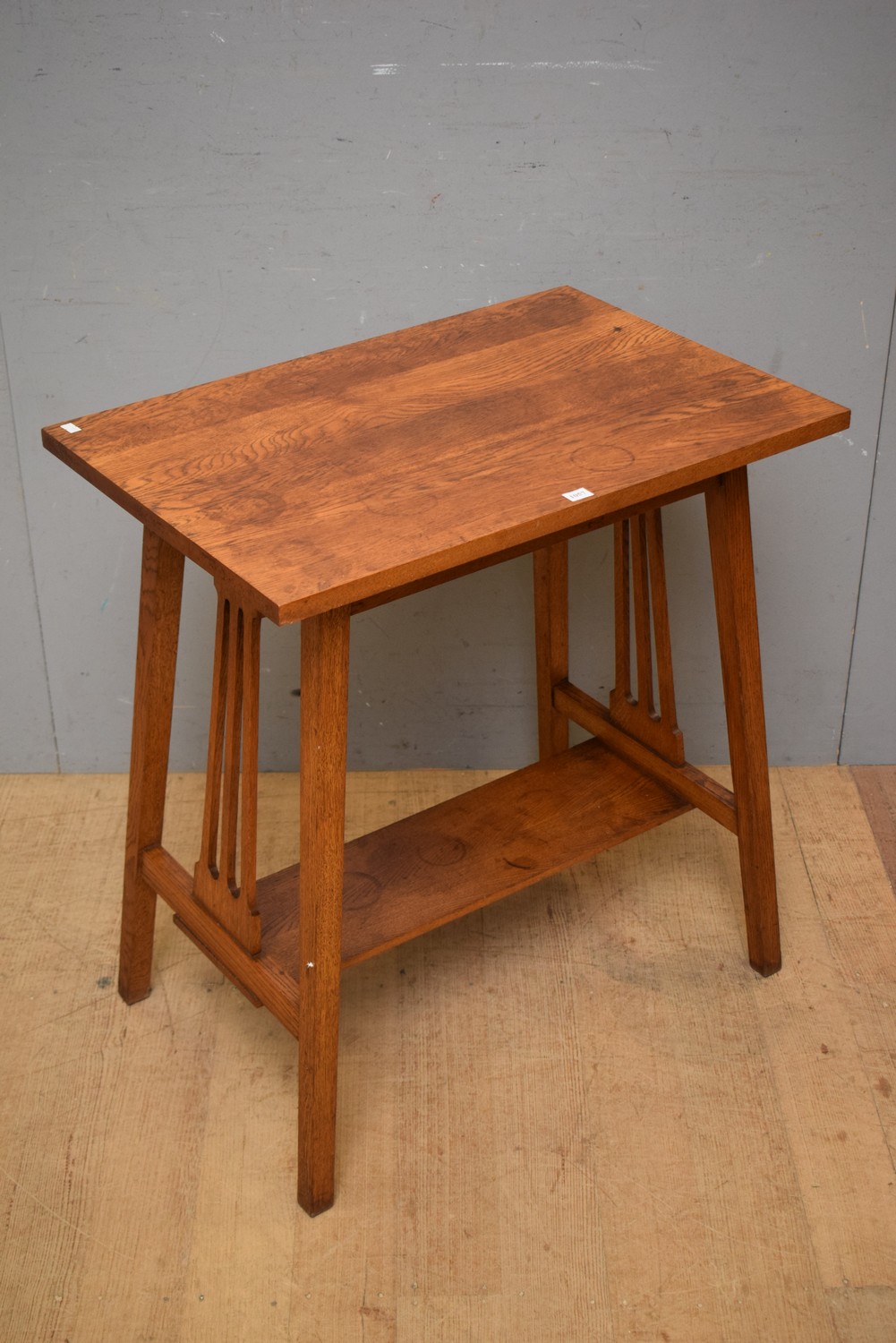 AN ARTS AND CRAFTS SOLID OAK TWO TIER SIDE TABLE (A/F) (74H x 69W x 46D CM) (LEONARD JOEL DELIVERY SIZE: MEDIUM)