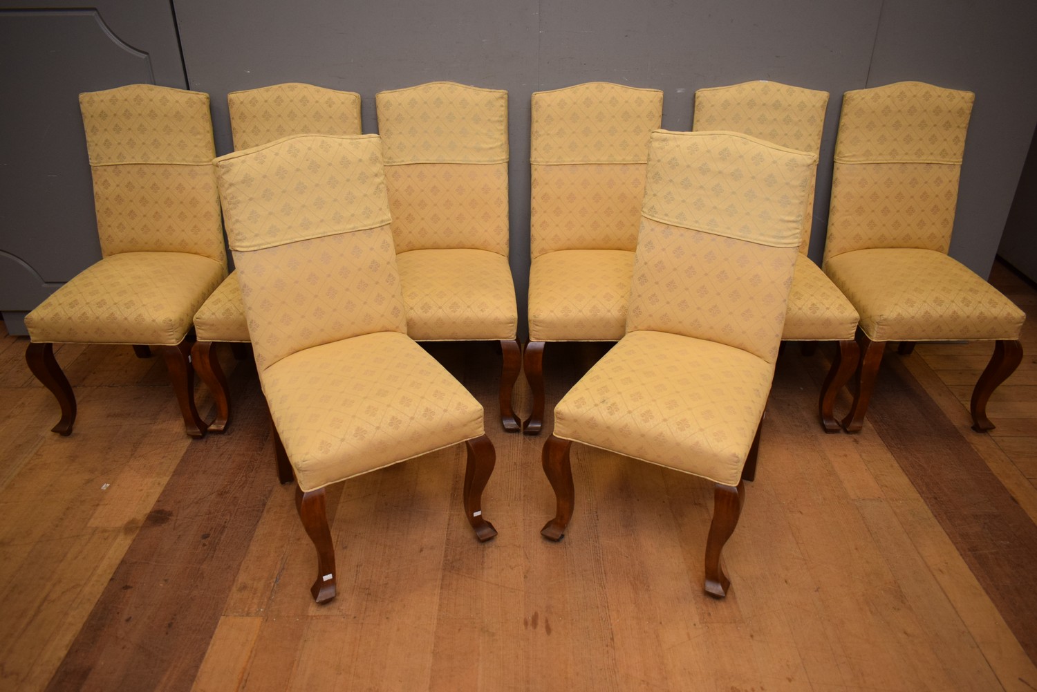 A SET OF EIGHT UPHOLSTERED DINING CHAIRS (100H x 47W x 61D CM) (LEONARD JOEL DELIVERY SIZE: LARGE)