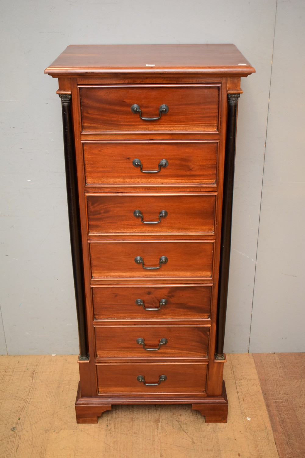 AN EMPIRE STYLE MAHOGANY SEVEN DRAWER TALLBOY (A/F) (136H x 60W x 44D CM) (PLEASE NOTE THIS HEAVY ITEM MUST BE REMOVED BY CARRIERS AT THE CUSTOMER'S EXPENSE. LEONARD JOEL STAFF CANNOT ASSIST CARRYING THIS ITEM) (X-LARGE ITEM)