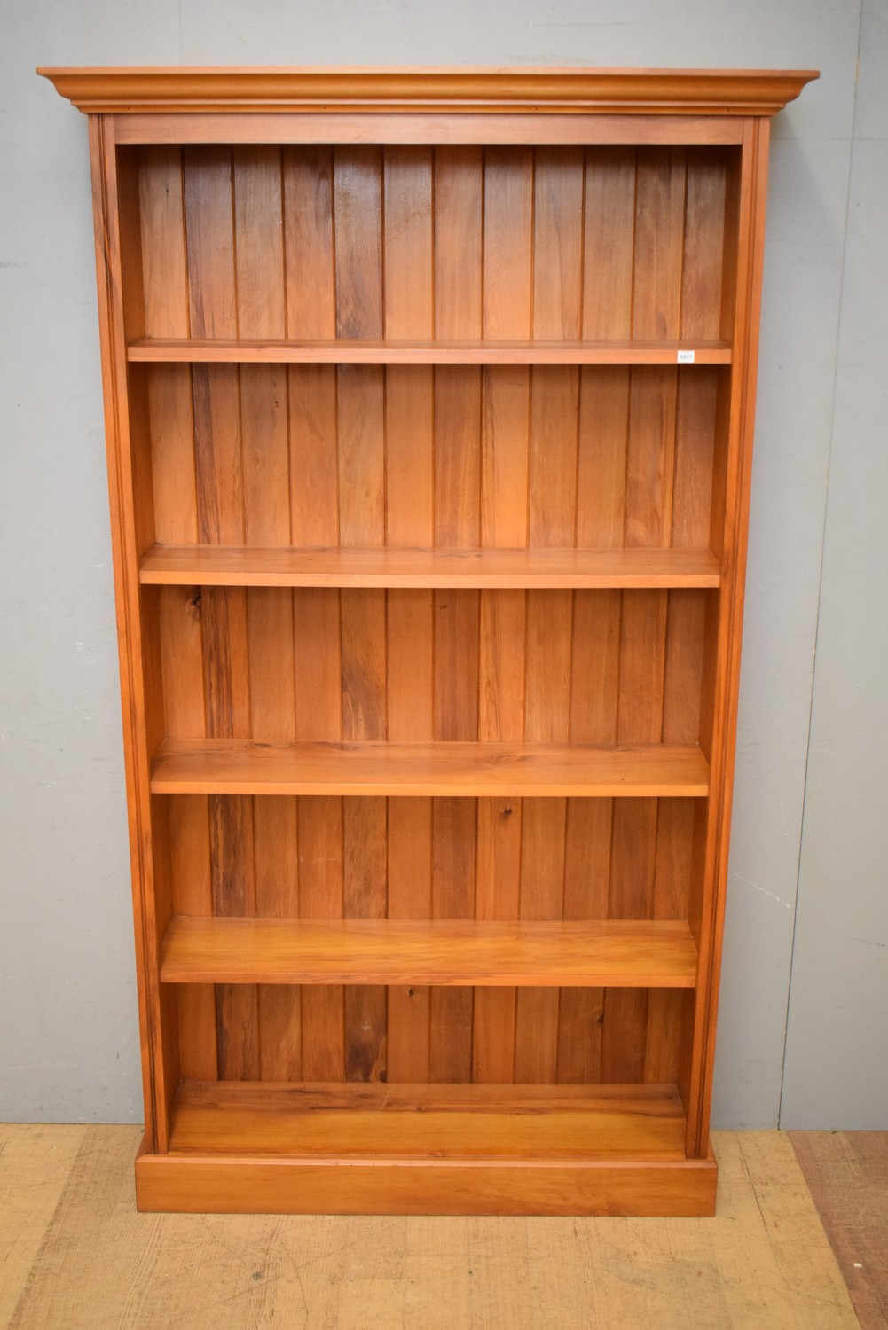 A NEW ZEALAND RIMU VICTORIAN STYLE TALL OPEN BOOKCASE (193H x 112W x 33D CM) (PLEASE NOTE THIS HEAVY ITEM MUST BE REMOVED BY CARRIERS AT THE CUSTOMER'S EXPENSE. LEONARD JOEL STAFF CANNOT ASSIST CARRYING THIS ITEM) (X-LARGE ITEM)
