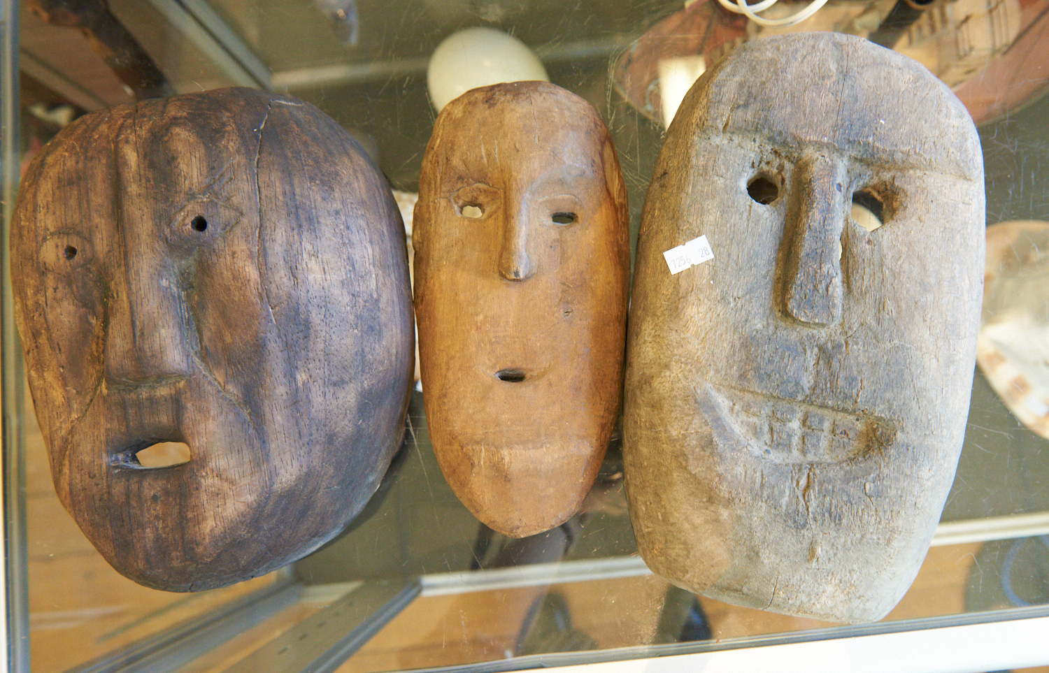 THREE CARVED AFRICAN MASKS H.24CM, LEONARD JOEL LOCAL DELIVERY SIZE: SMALL