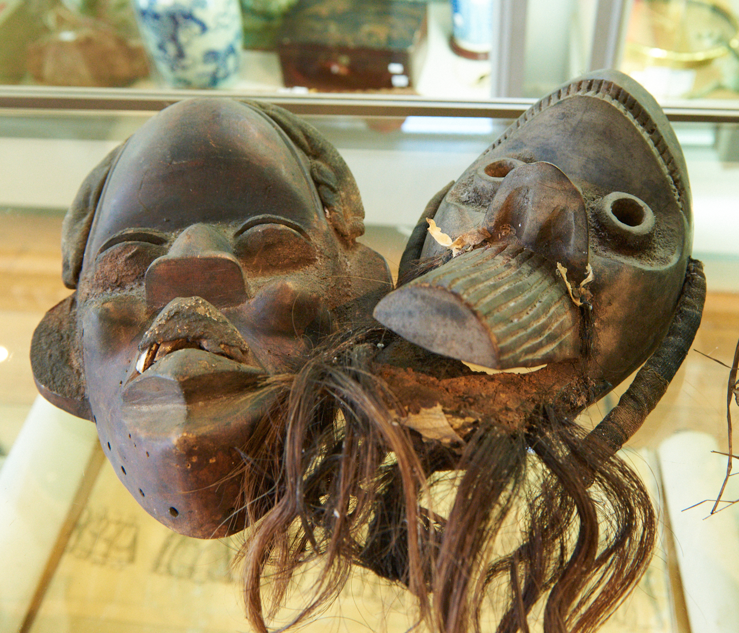 TWO AFRICAN MASKS H.30CM, LEONARD JOEL LOCAL DELIVERY SIZE: SMALL
