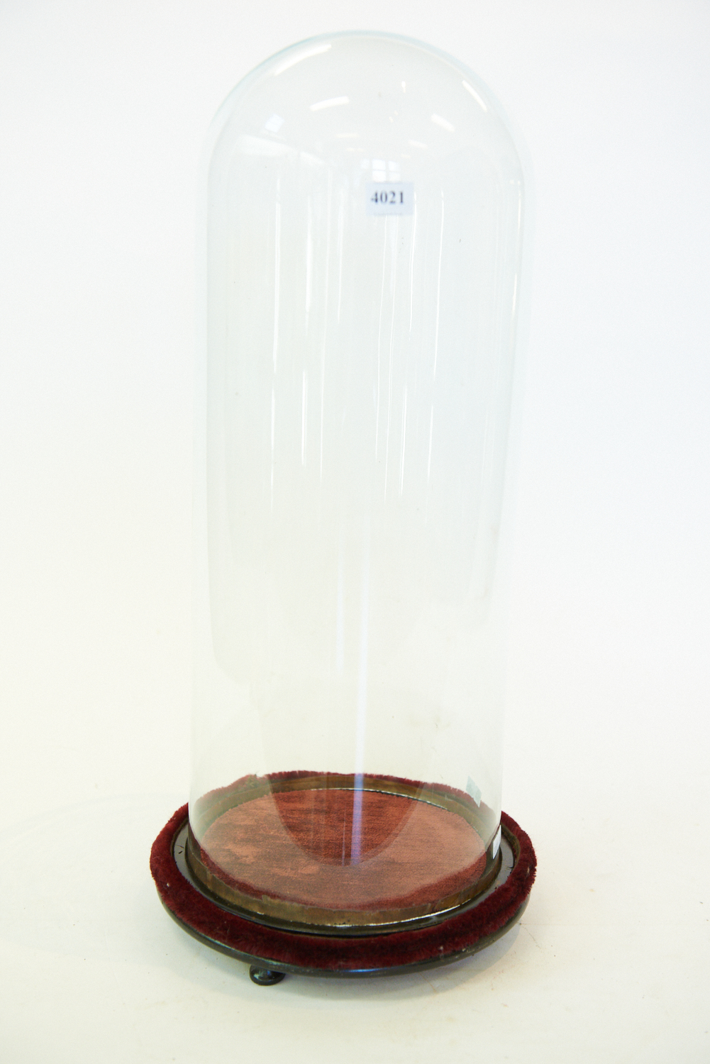 A 19TH CENTURY FRENCH GLASS DOME ON EBONISED BLACK WOODEN BASE H.53CM, LEONARD JOEL LOCAL DELIVERY SIZE: SMALL