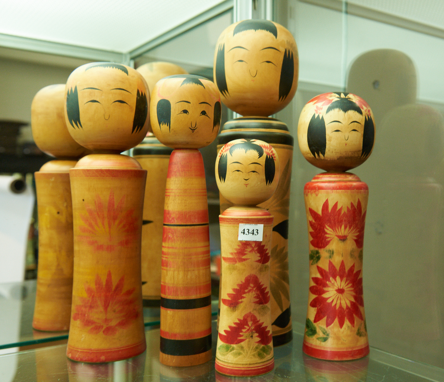 COLLECTION OF FIVE VINTAGE HAND PAINTED WOODEN JAPANESE KOKESHI DOLLS, LEONARD JOEL LOCAL DELIVERY SIZE: SMALL