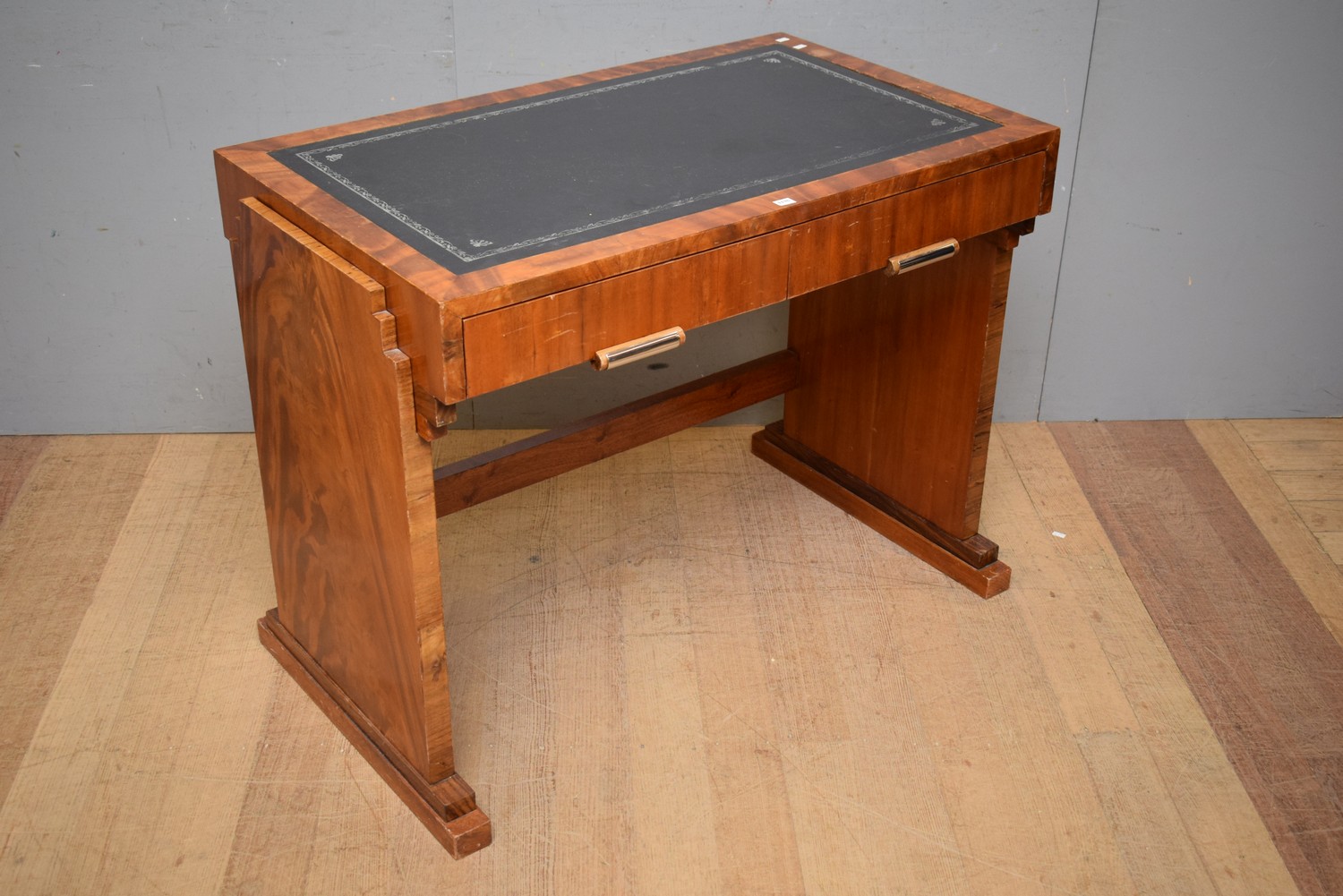 AN ART DECO STYLE TWO DRAWER LEATHER INLAY TABLE (A/F) (80H x 105W x 62D CM) (LEONARD JOEL DELIVERY SIZE: LARGE)