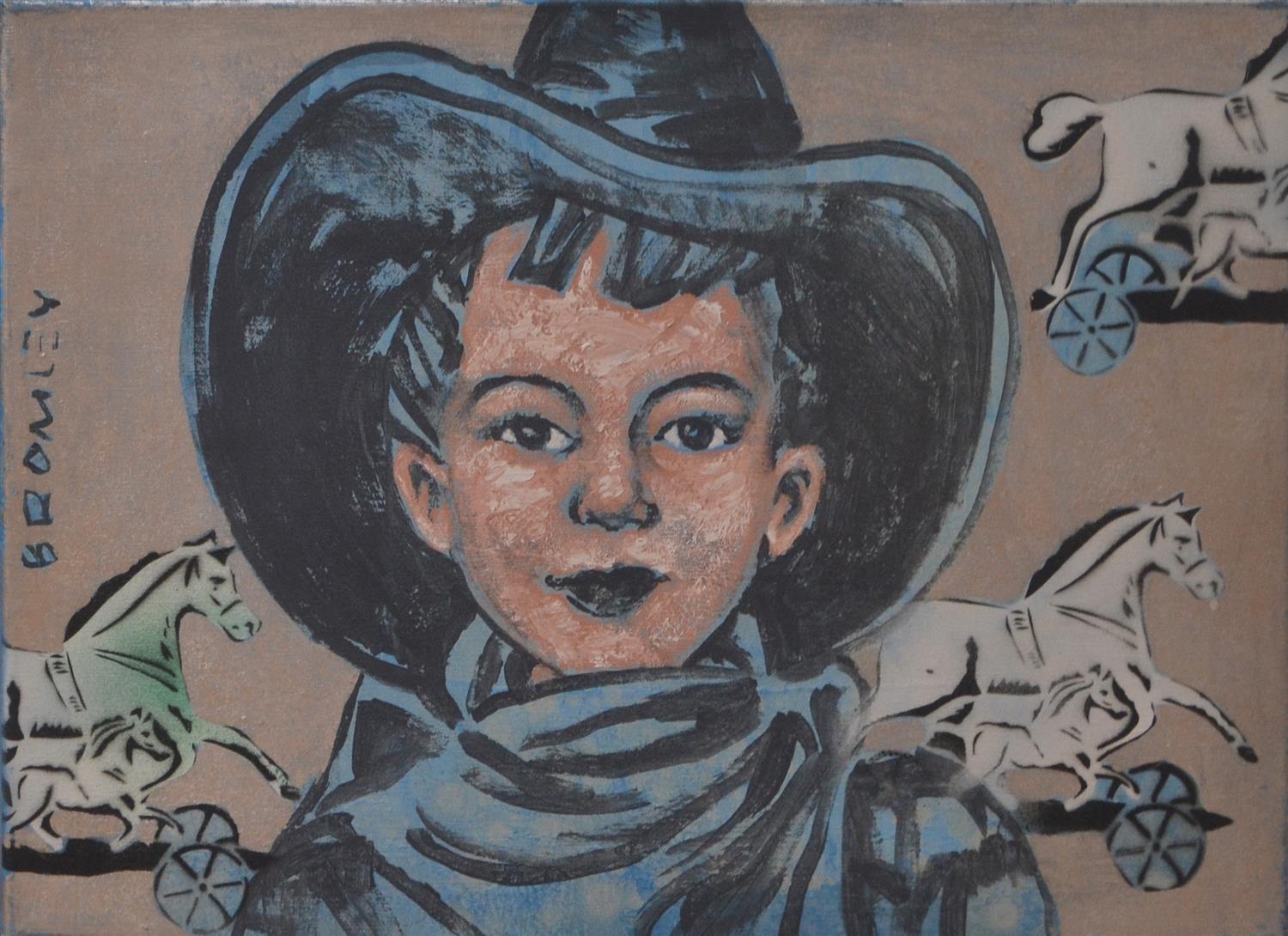 DAVID BROMLEY, YOUNG COWBOY, OIL AND SILVER LEAF ON CANVAS, 46 X 61CM, LEONARD JOEL DELIVERY SIZE: MEDIUM