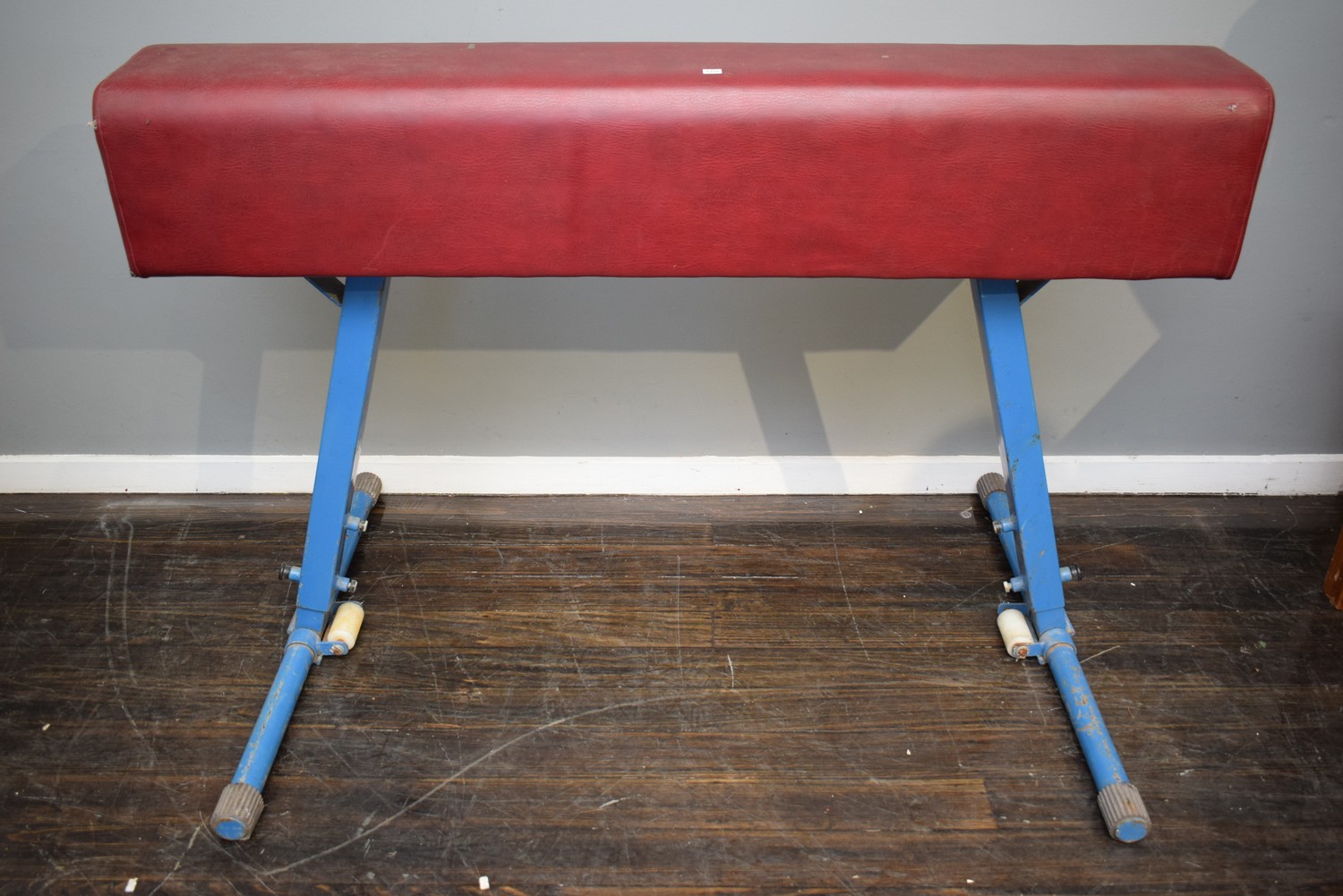 A GYMNASTICS VAULTING HORSE (A/F) (110H x 160w x 97D CM) (PLEASE NOTE THIS HEAVY ITEM MUST BE REMOVED BY CARRIERS AT THE CUSTOMER'S EXPENSE. LEONARD JOEL STAFF CANNOT ASSIST CARRYING THIS ITEM) (X-LARGE ITEM)
