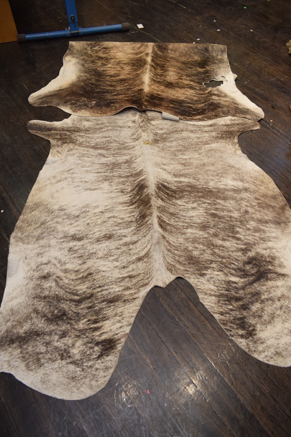 TWO COW HIDE RUGS (A/F) (220 x 160 CM) (LEONARD JOEL DELIVERY SIZE: MEDIUM)