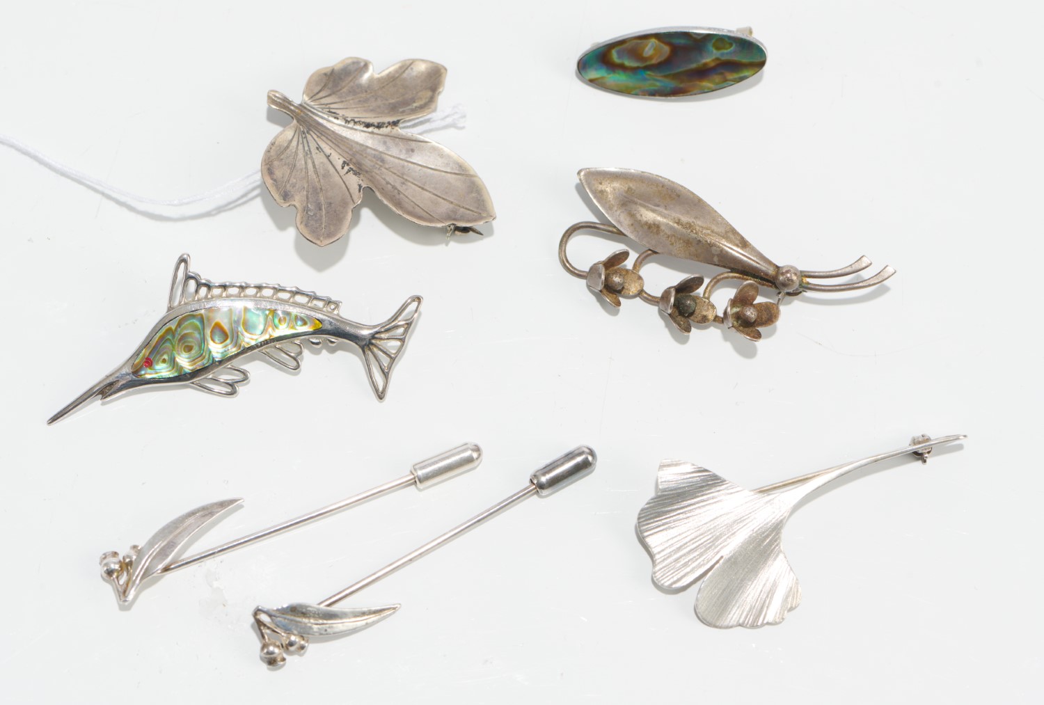 A COLLECTION OF BROOCHES IN SILVER INCLUDING DANISH
