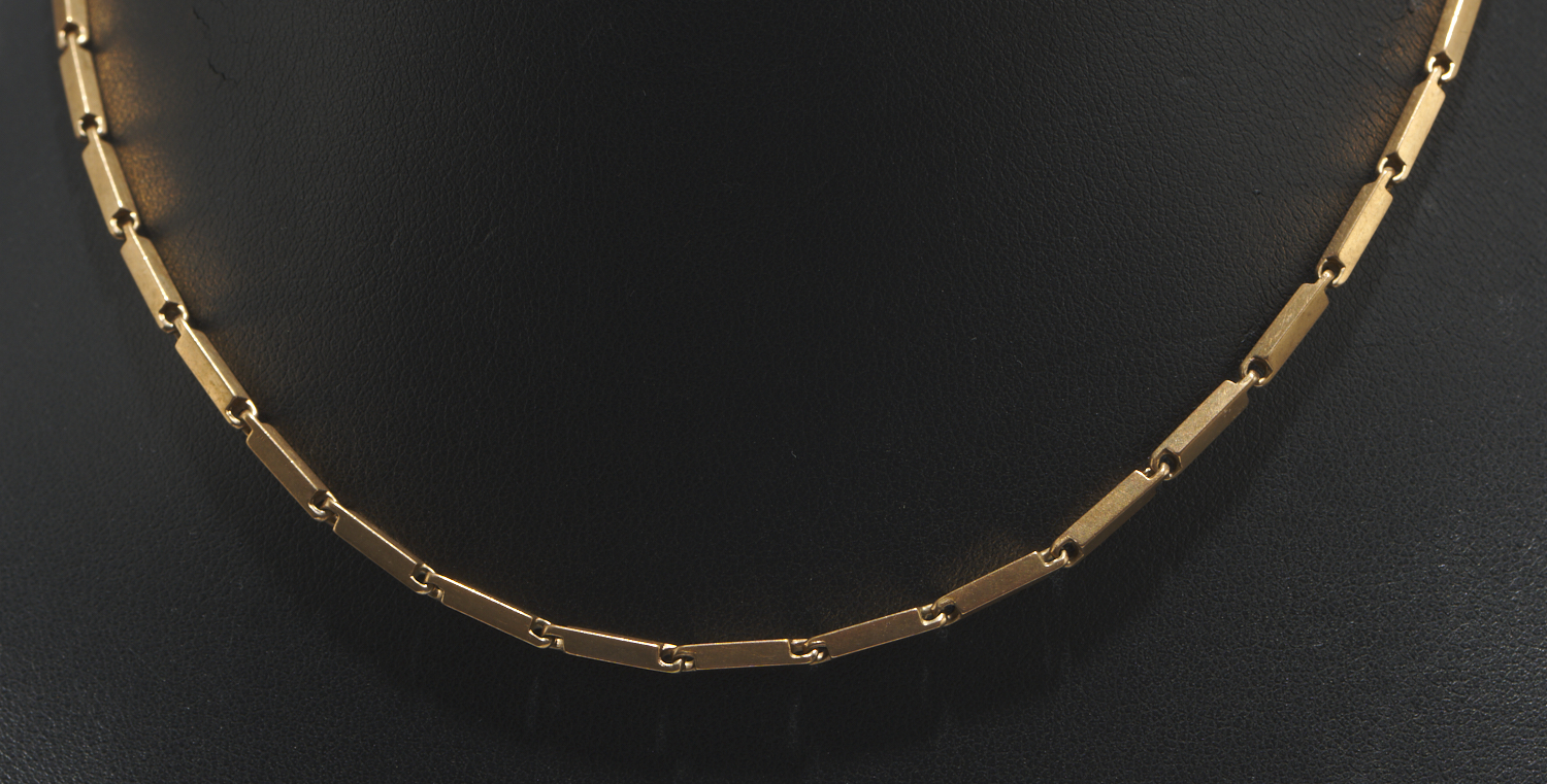 A FANCY LINK CHAIN IN 9CT GOLD, TOTAL LENGTH 380MM