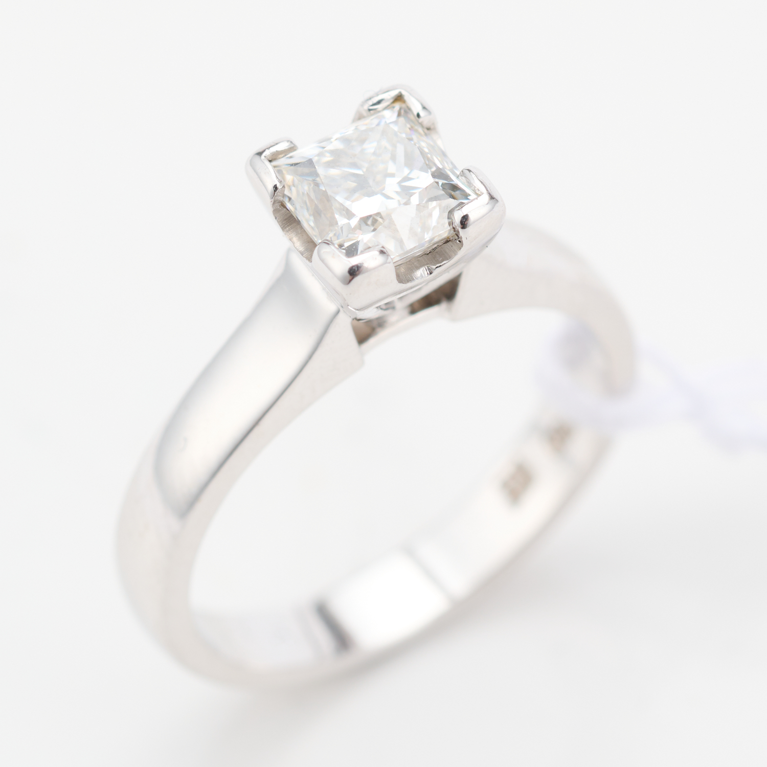A SOLITAIRE DIAMOND RING OF 0.80CTS IN 18CT WHITE GOLD BY NICHOLAS PIKE, RING SIZE J, BOXED