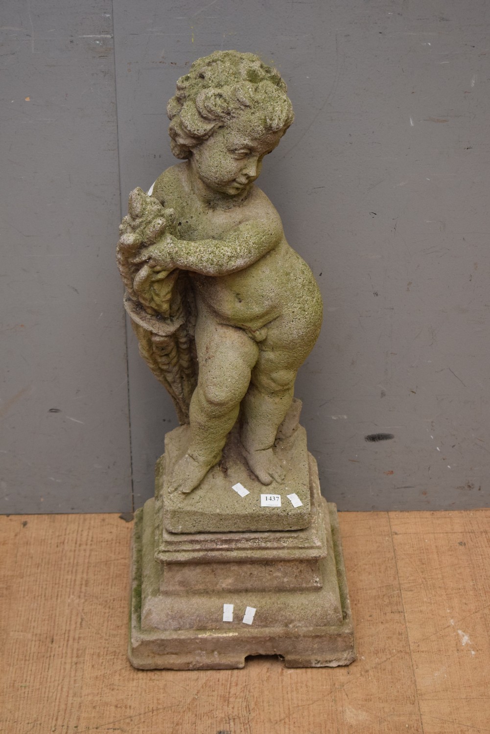 A CLASSICAL STYLE CONCRETE CHERUB STATUE (A/F) ( 78H CM) (PLEASE NOTE THIS HEAVY ITEM MUST BE REMOVED BY CARRIERS AT THE CUSTOMER'S EXPENSE. LEONARD JOEL STAFF CANNOT ASSIST CARRYING THIS ITEM) (X-LARGE ITEM)