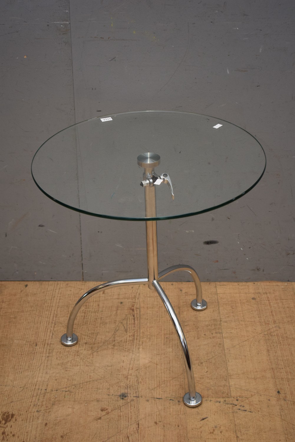 A CHROME EXTENDING ROUND SIDE TABLE (H53 X D50 CM) (LEONARD JOEL DELIVERY SIZE: MEDIUM)