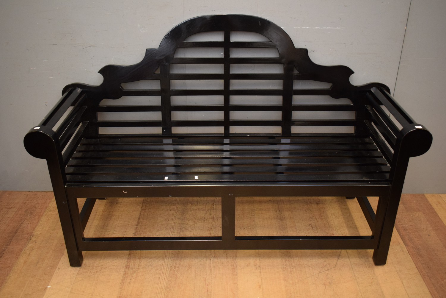 A LUTYENS TEAK BENCH SEAT IN WATERPROOF LACQUER FINISH (105H x 166W x 62D CM) (LEONARD JOEL DELIVERY SIZE: LARGE)