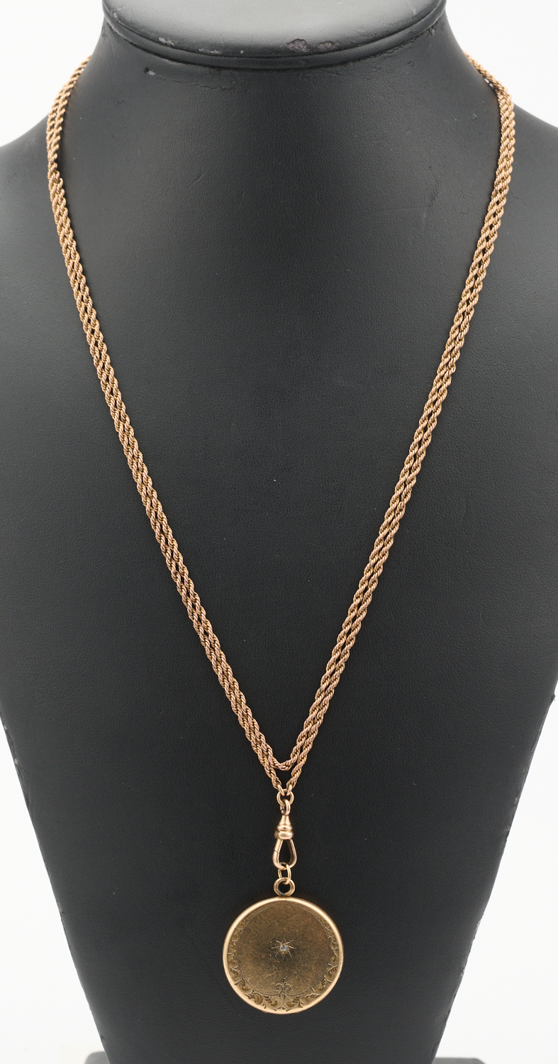 A GUARD CHAIN AND LOCKET WITH A SEED PEARL SET HEART SLIDER, LENGTH 600MM