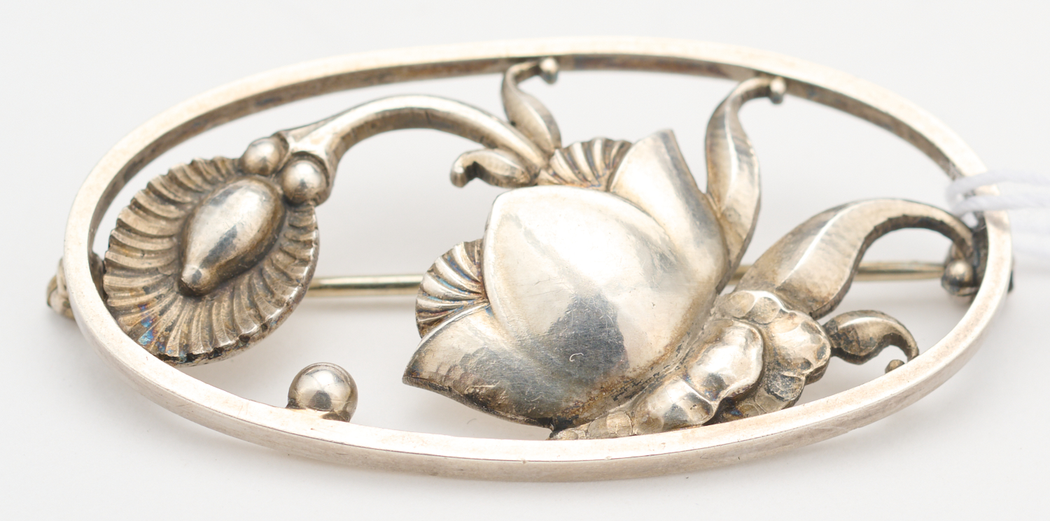 A BROOCH BY GEORG JENSEN, WITH OPEN FLOWER DESIGN IN STERLING SILVER, REFERENCE NUMBER 274