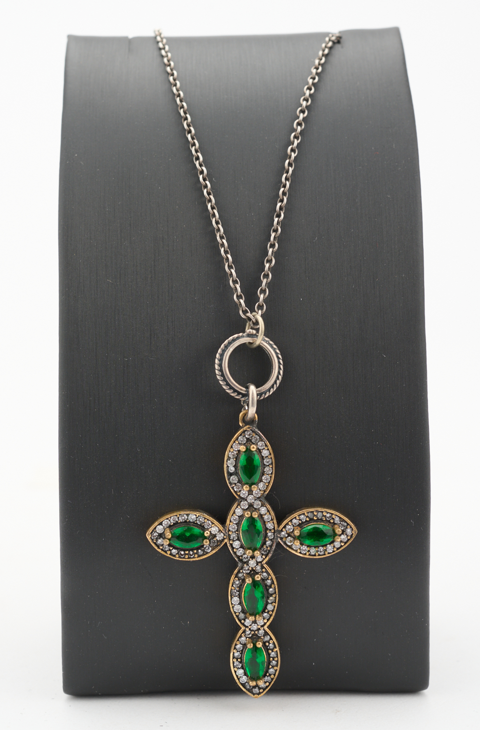 A PASTE SET CROSS AND CHAIN IN STERLING SILVER, TOTAL LENGTH 40MM, 17.8 GMS