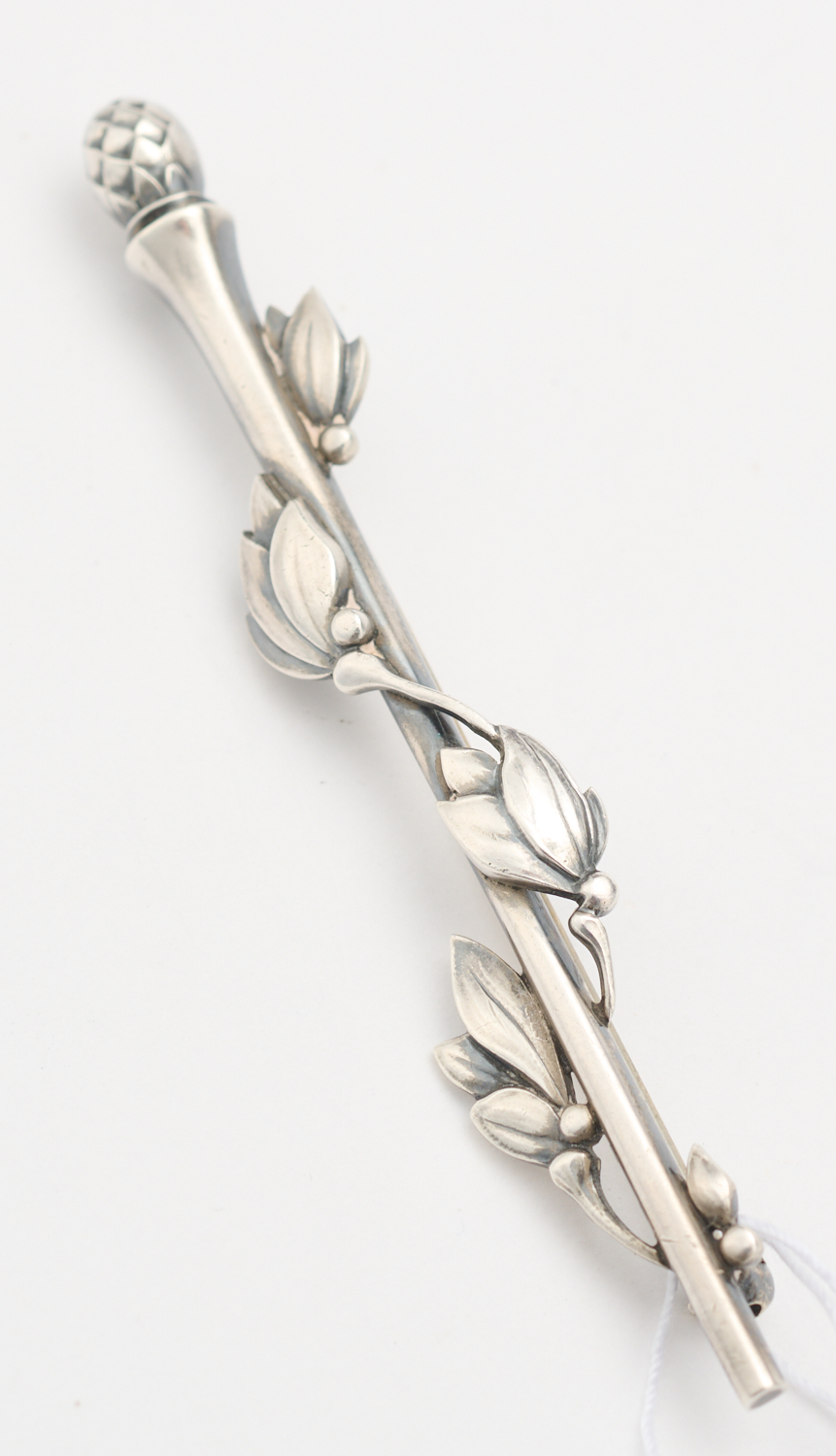 A BROOCH BY GEORG JENSEN, WITH LAUREL SHAFT DESIGN IN STERLING SILVER, REFERENCE NUMBER 287