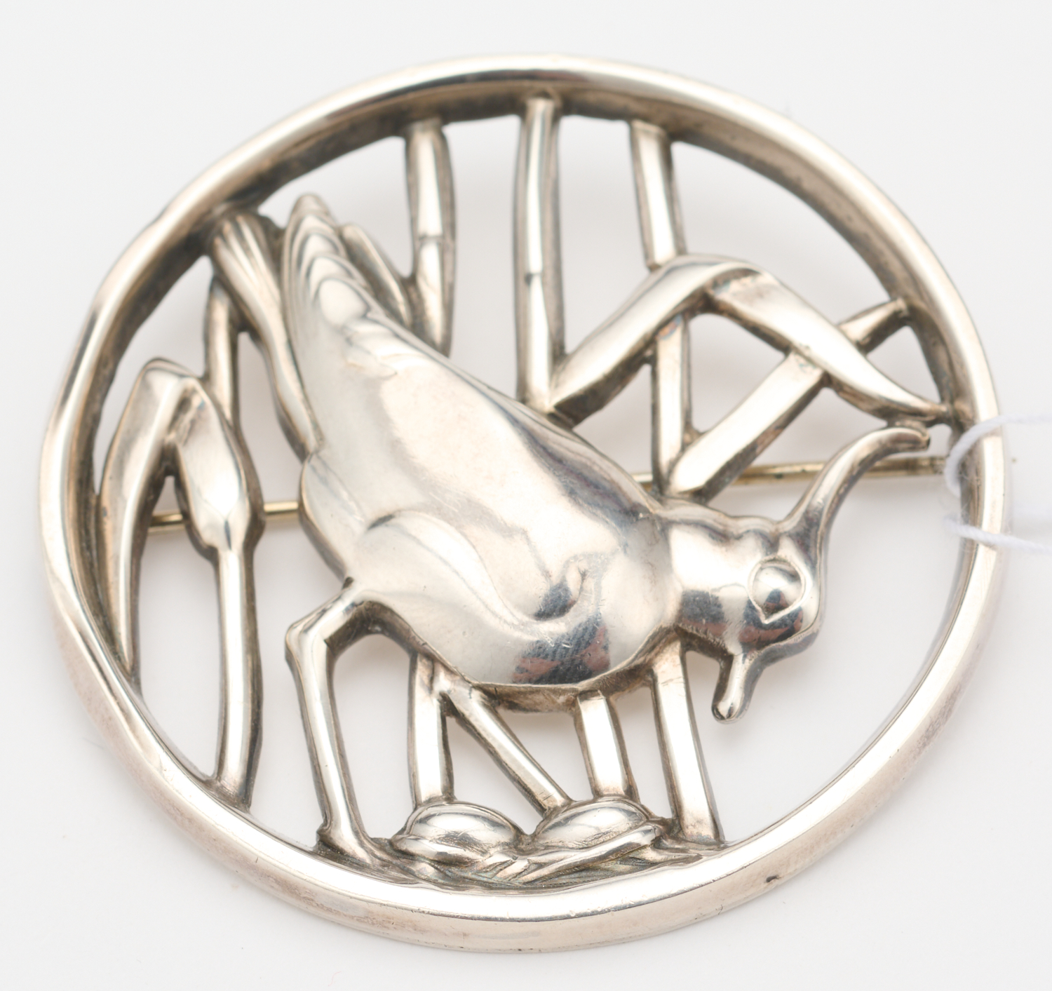 A BROOCH BY GEORG JENSEN, WITH LAPWING DESIGN IN STERLING SILVER, REFERENCE NUMBER 297