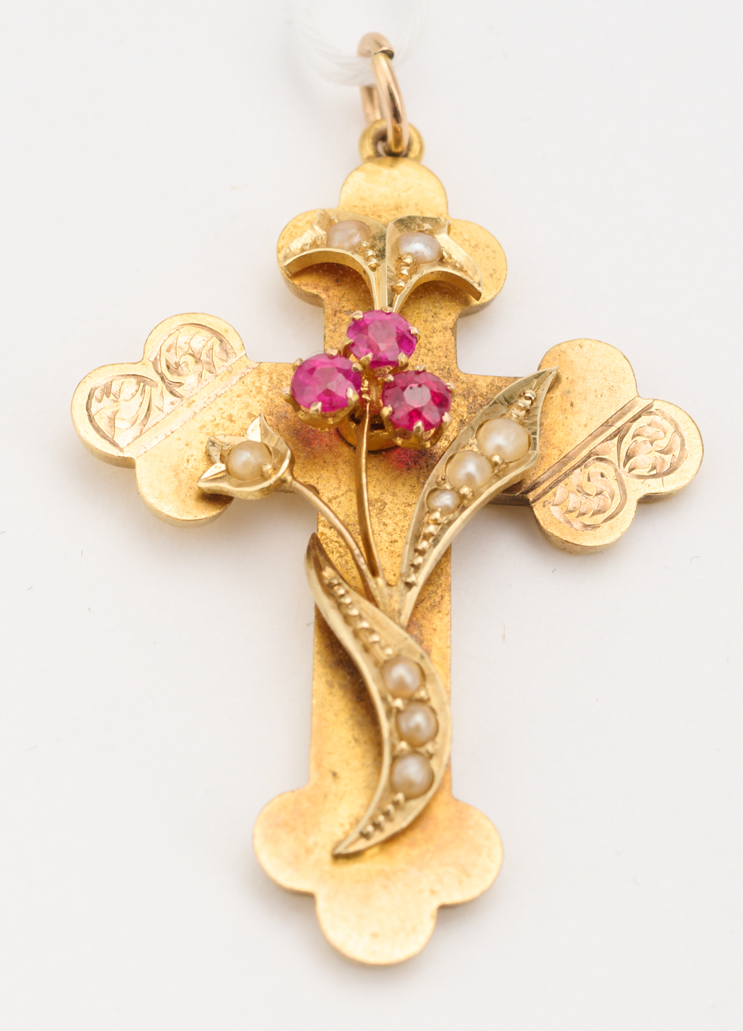 AN ANTIQUE AUSTRALIAN RUBY AND SEED PEARL CROSS