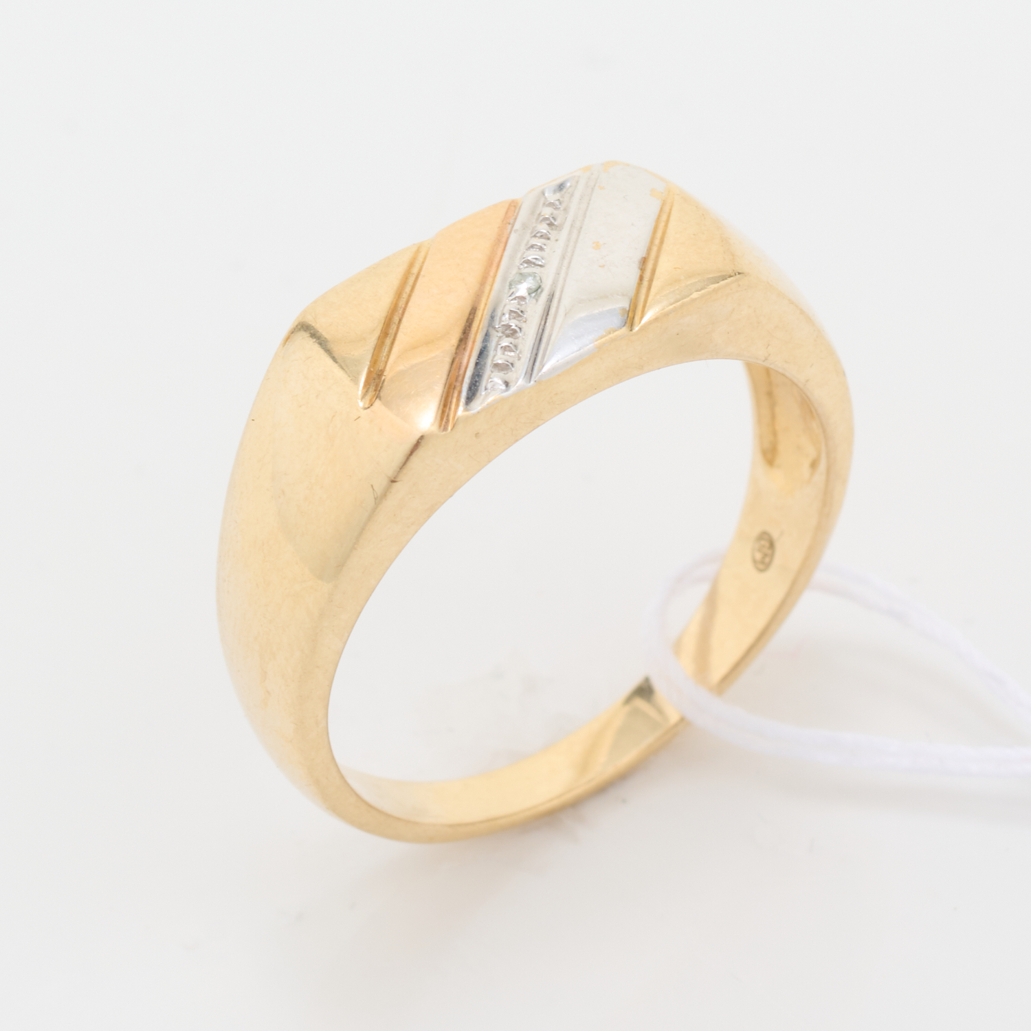 A DIAMOND SET SIGNET RING IN TWO TONE 9CT GOLD, RING SIZE U, 6.4GMS