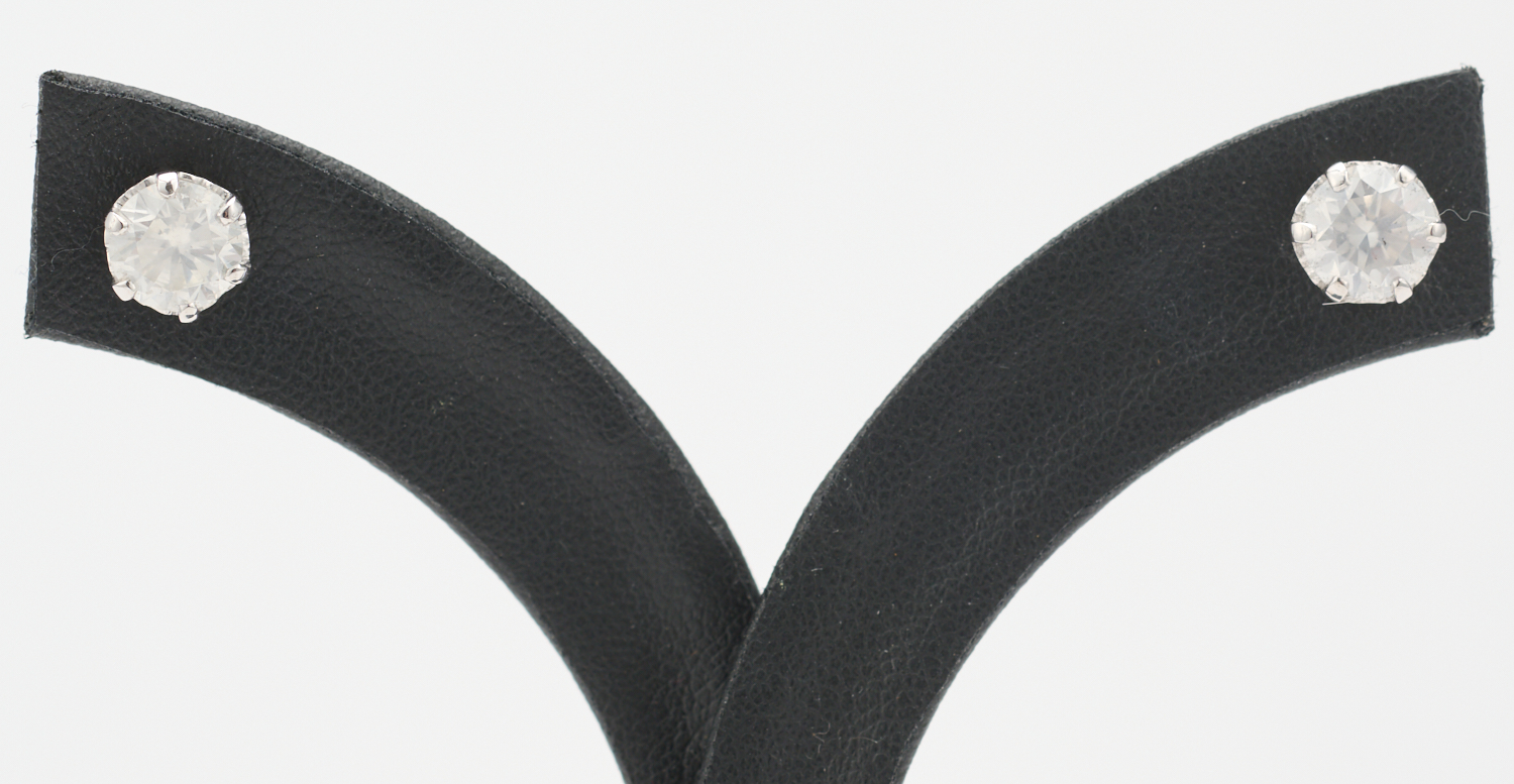 A PAIR OF DIAMOND STUD EARRINGS IN 18CT WHITE GOLD, DIAMONDS TOTALLING 2.30CTS, TO POST AND BUTTERFLY FITTINGS, 1.9GMS