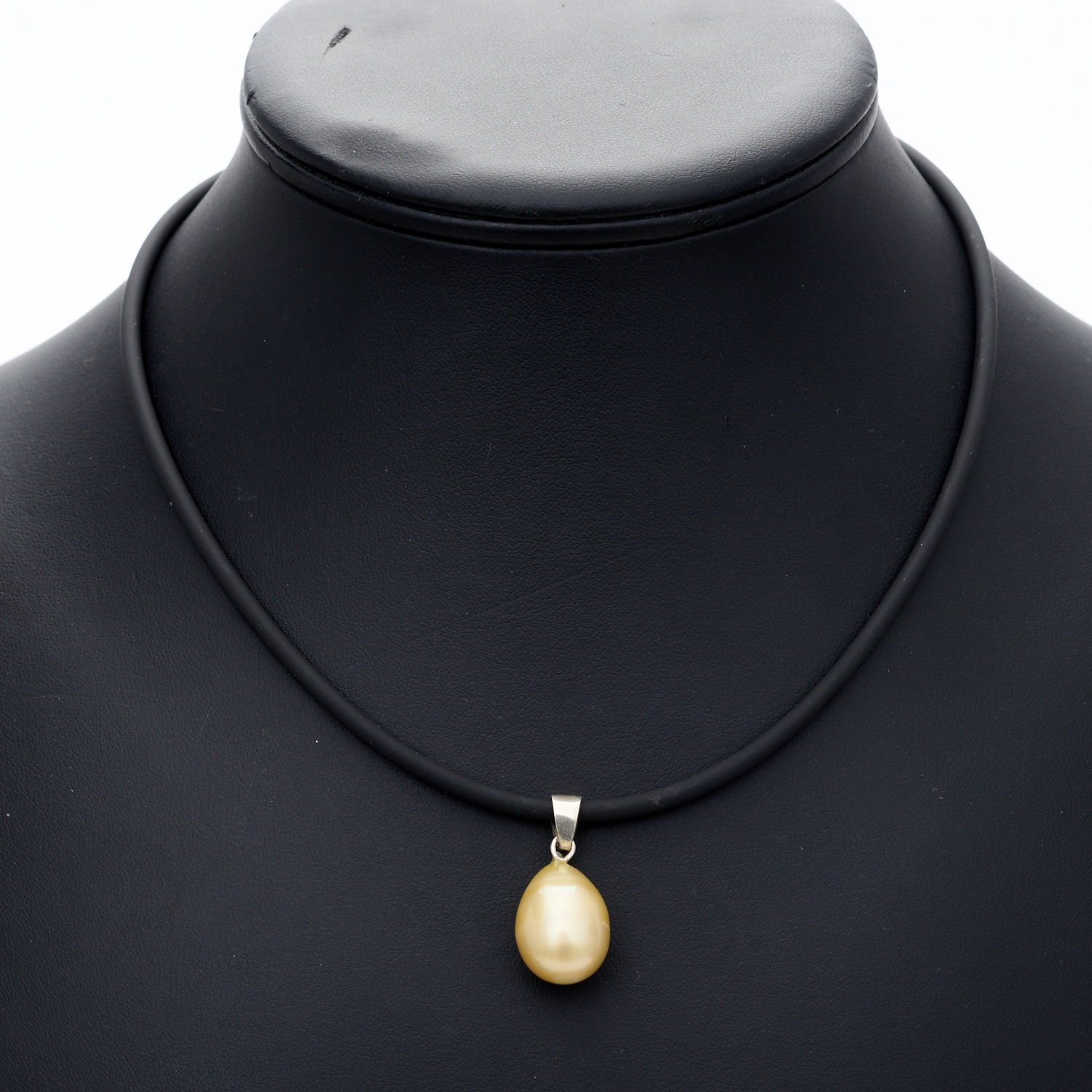 A PEARL PENDANT TO A NEOPRENE NECKLACE