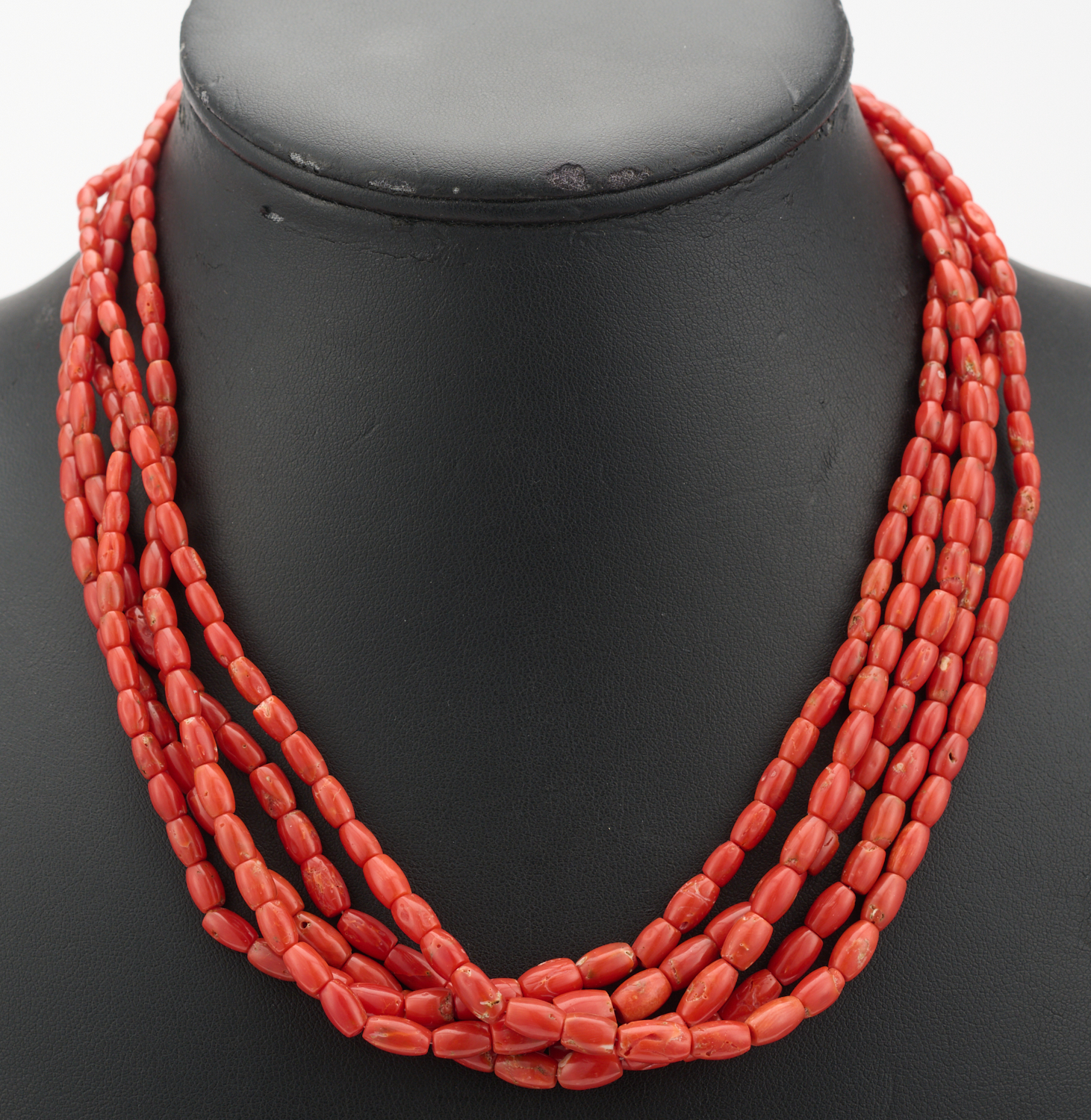 A MULTI STRAND ITALIAN CORAL NECKLACE