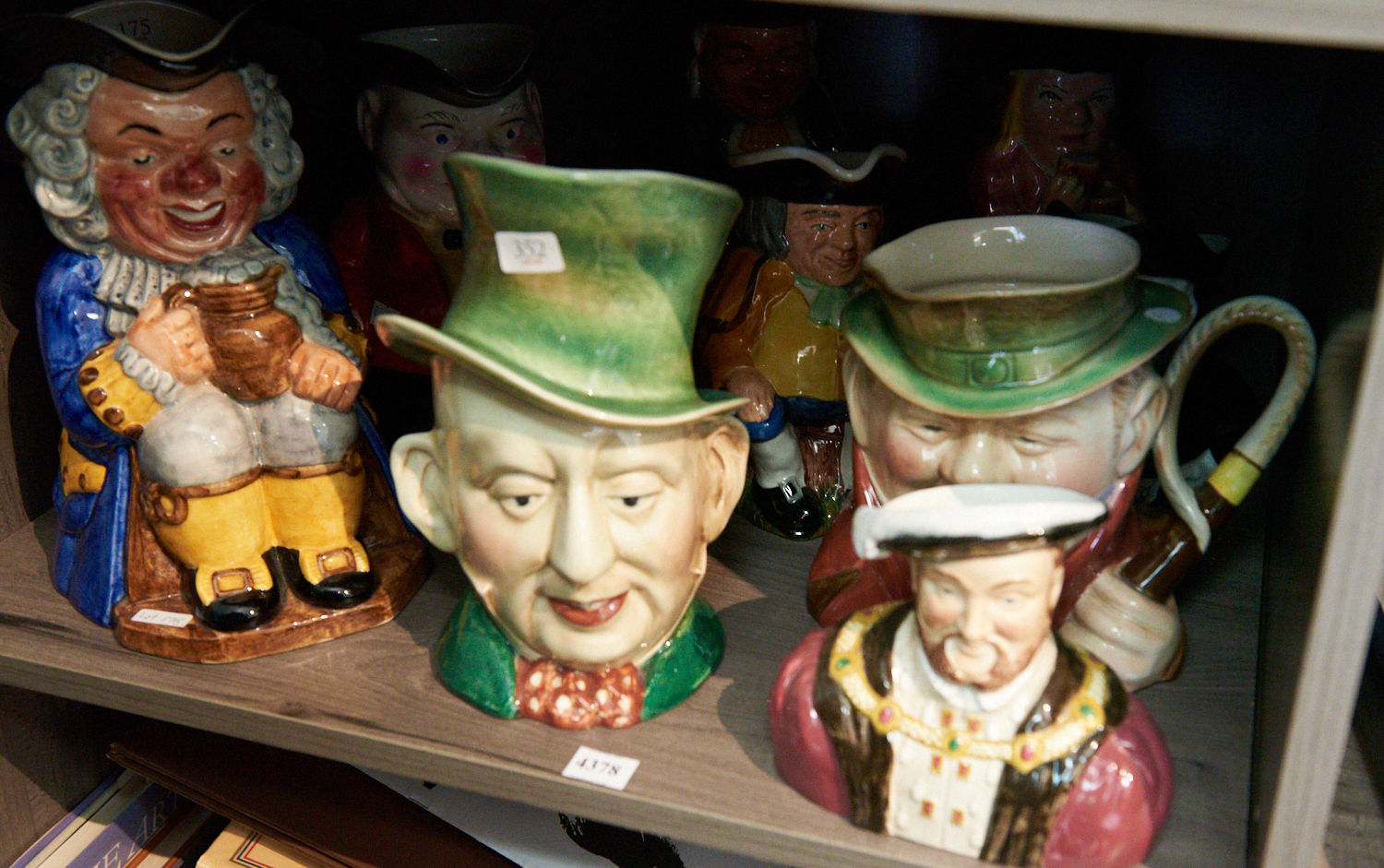 A SHELF OF TOBY JUGS, LEONARD JOEL LOCAL DELIVERY SIZE: SMALL