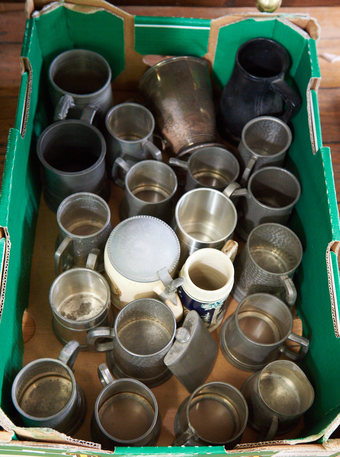 A BOX LOT OF PEWTER, LEONARD JOEL LOCAL DELIVERY SIZE: SMALL