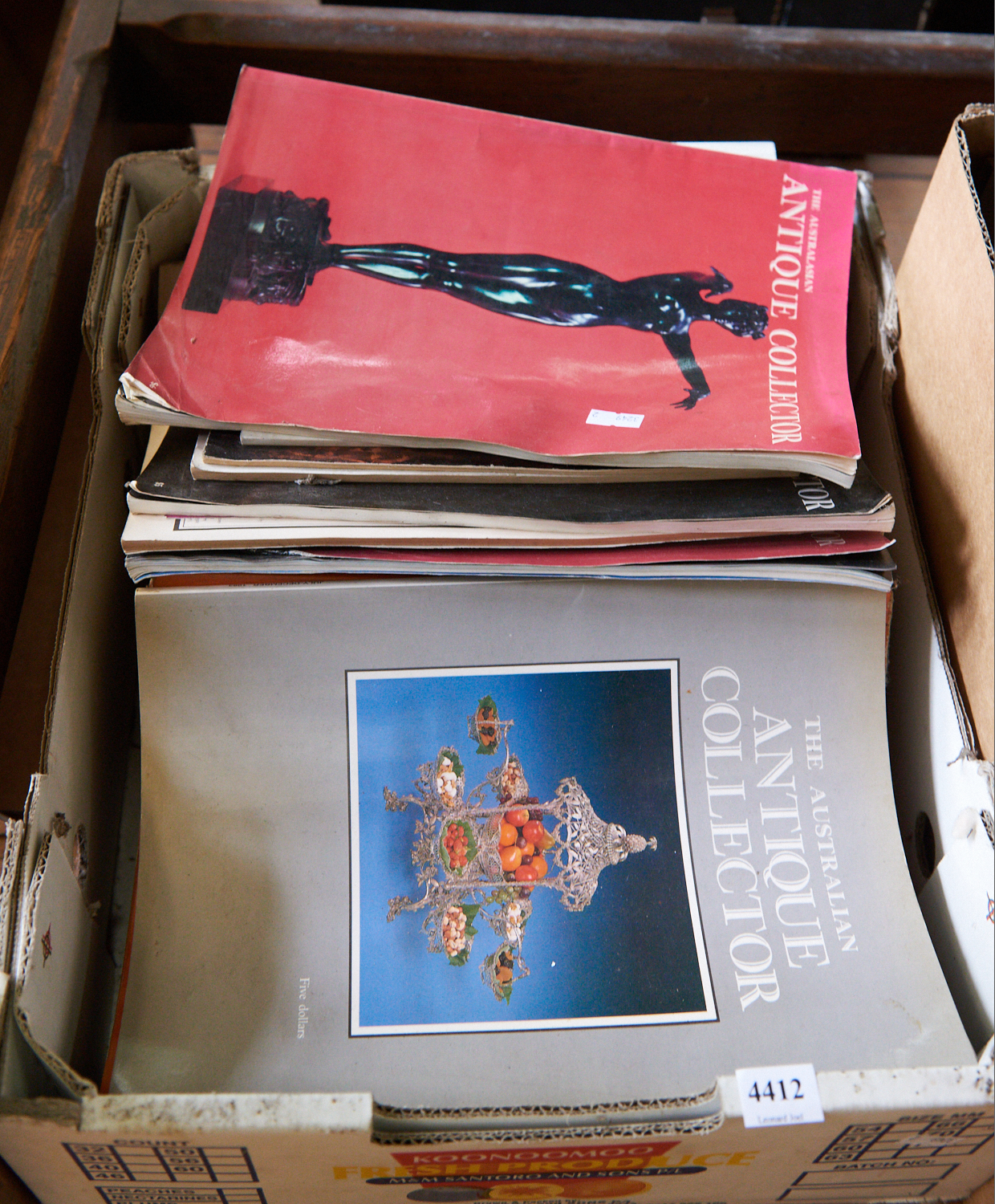 A BOX OF ANTIQUE TRADER AND ANTIQUE COLLECTOR MAGAZINES, LEONARD JOEL LOCAL DELIVERY SIZE: SMALL