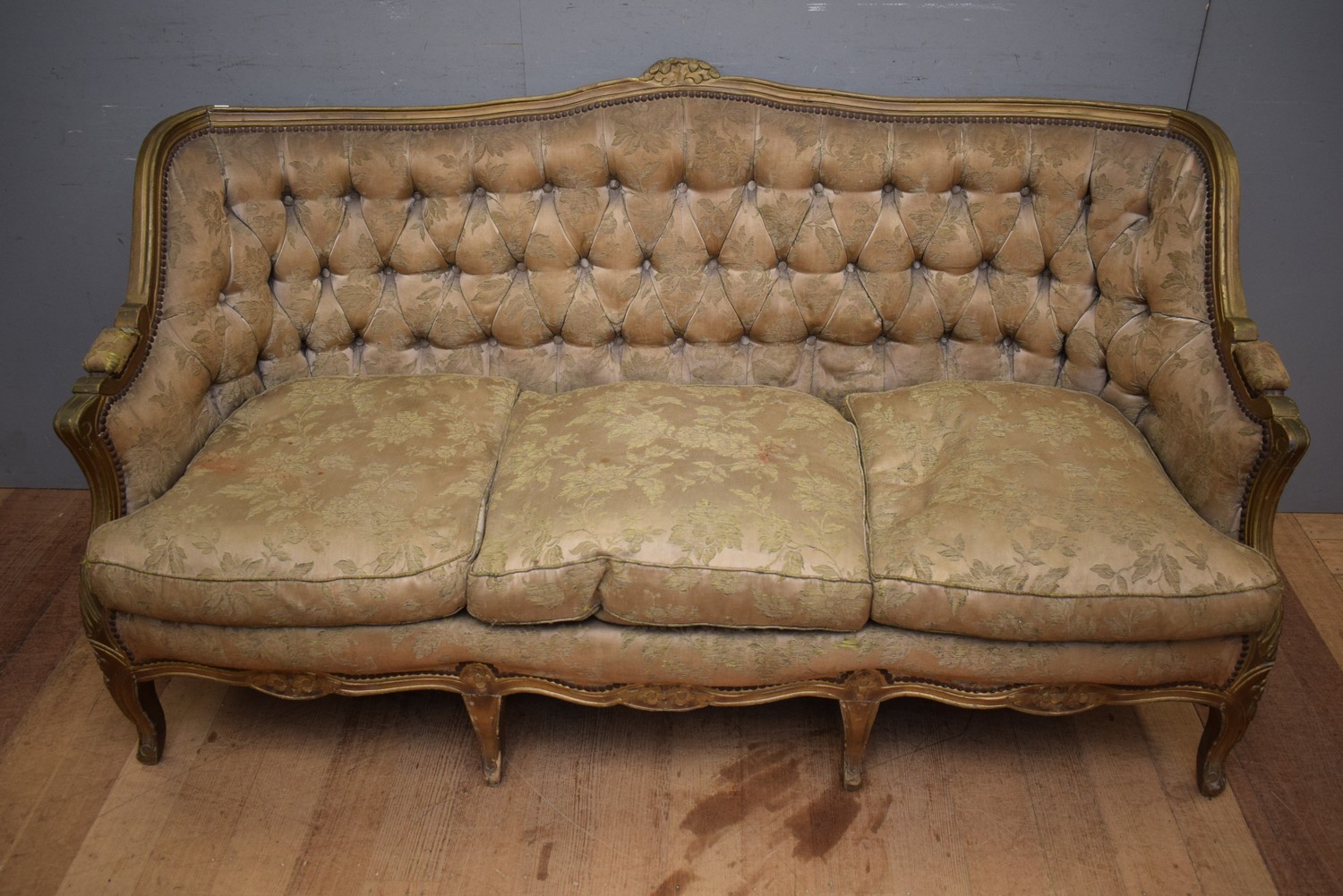A LOUIS XV STYLE THREE SEAT SETTEE (A/F) ( 92H X 168W X 76D CM) (PLEASE NOTE THIS HEAVY ITEM MUST BE REMOVED BY CARRIERS AT THE CUSTOMER'S EXPENSE. LEONARD JOEL STAFF CANNOT ASSIST CARRYING THIS ITEM) (X-LARGE ITEM)