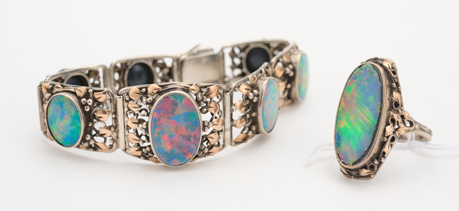 AN OPAL JEWELLERY SUITE IN THE STYLE OF RHODA WAGNER