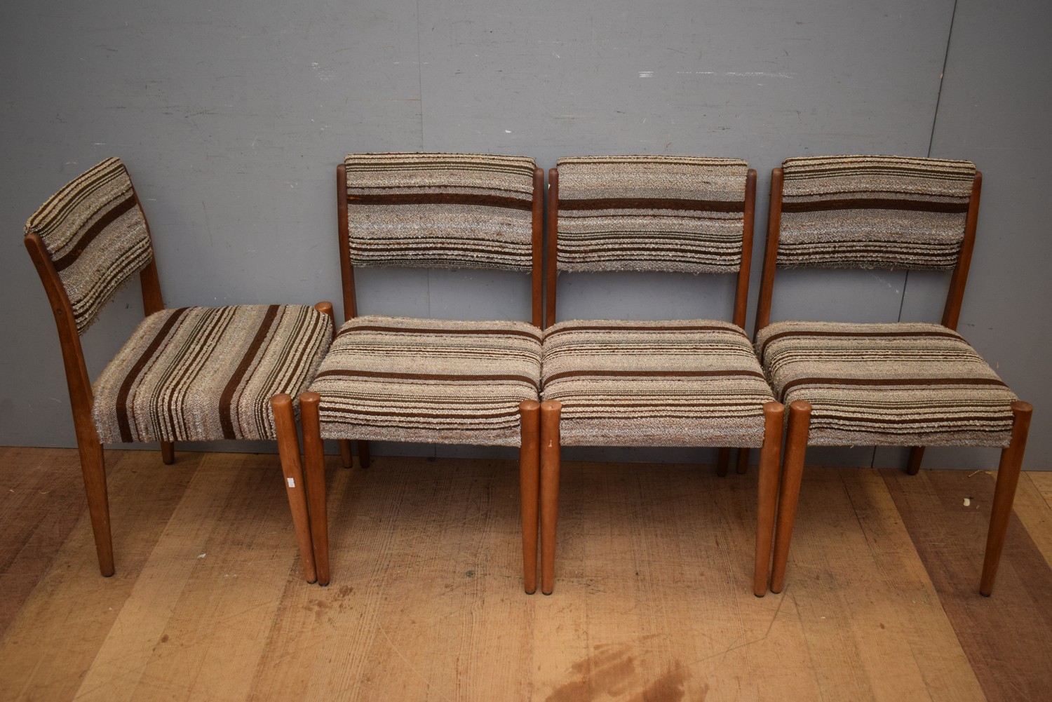 A SET OF FOUR MID-CENTURY DINING CHAIRS (A/F) ( 80H X 47W X 46D CM) (LEONARD JOEL DELIVERY SIZE: LARGE)
