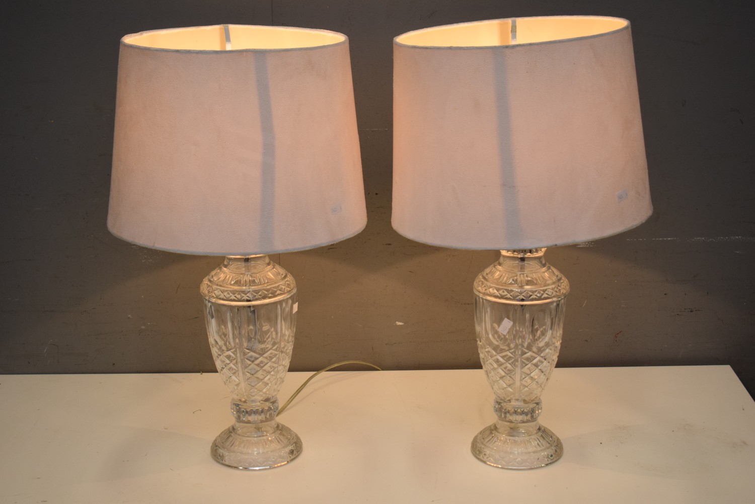 A PAIR OF GLASS TABLE LAMPS (H59 CM) (LEONARD JOEL DELIVERY SIZE: MEDIUM)