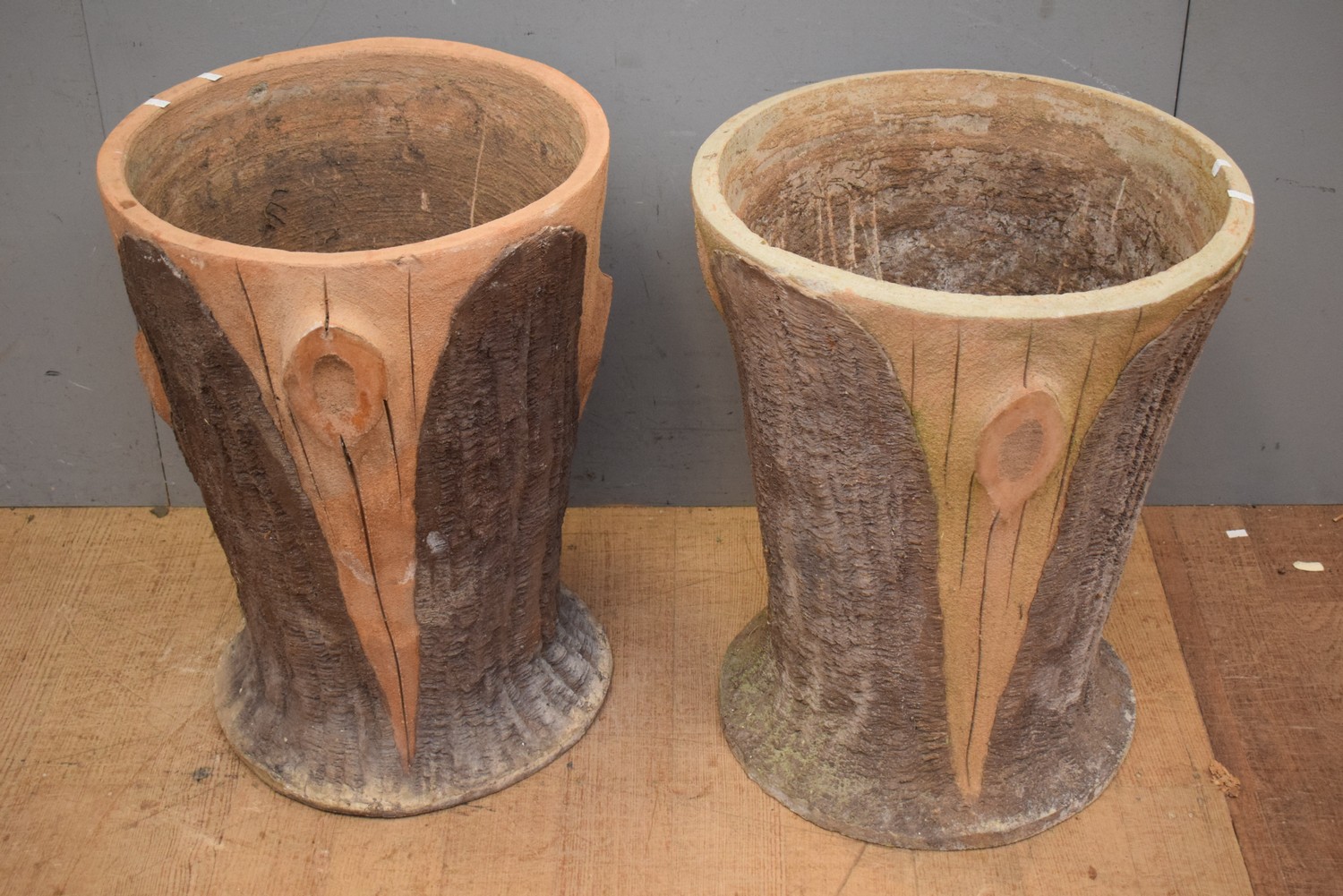 A PAIR OF FAUX BOIS TREE FORM PLANTERS (A/F) ( 59H X 46 DIAMETER CM) (PLEASE NOTE THIS HEAVY ITEM MUST BE REMOVED BY CARRIERS AT THE CUSTOMER'S EXPENSE. LEONARD JOEL STAFF CANNOT ASSIST CARRYING THIS ITEM) (X-LARGE ITEM)