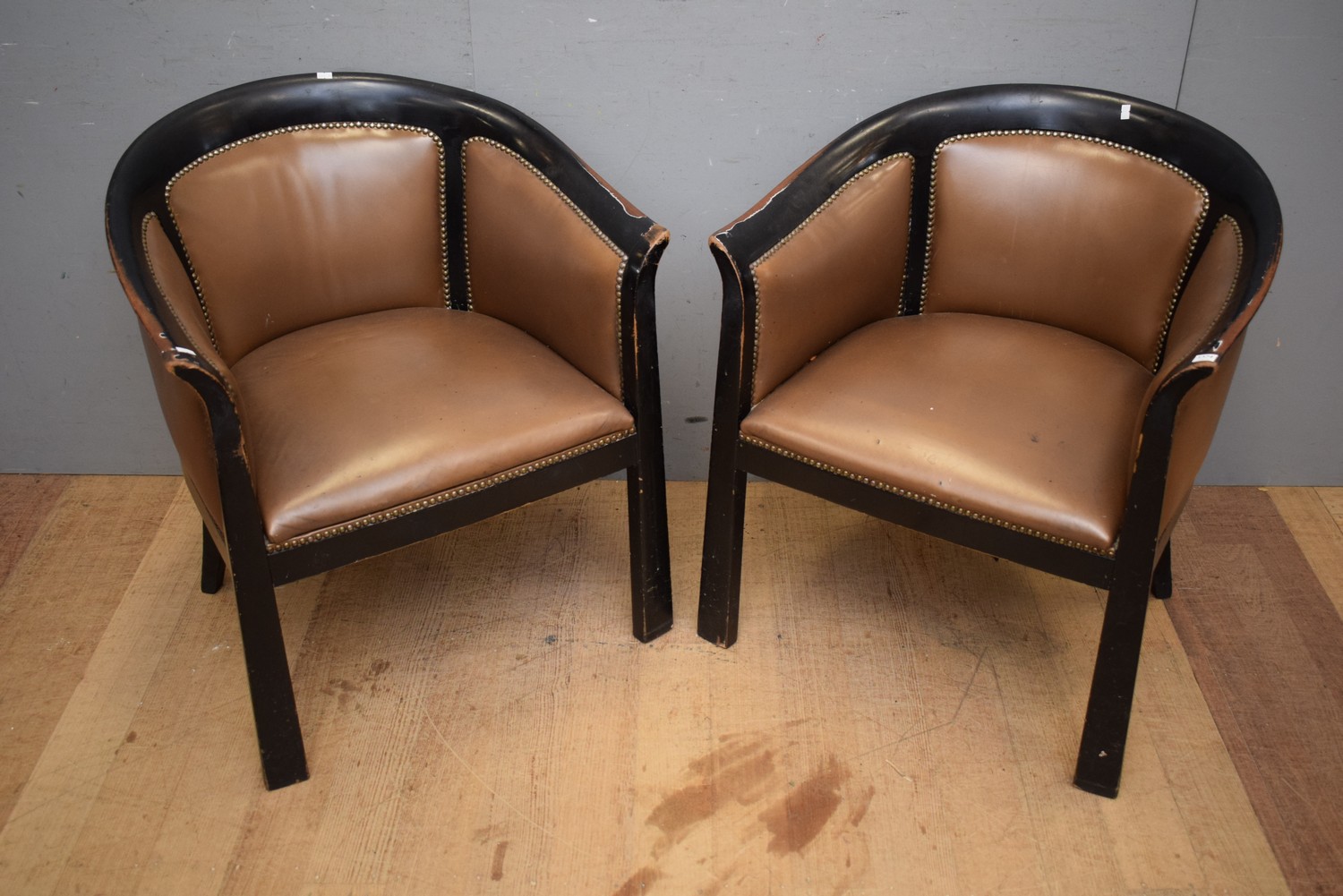 A PAIR OF LEATHER STUDDED ARMCHAIRS ( 78H X 69W X 63D CM) (LEONARD JOEL DELIVERY SIZE: LARGE)