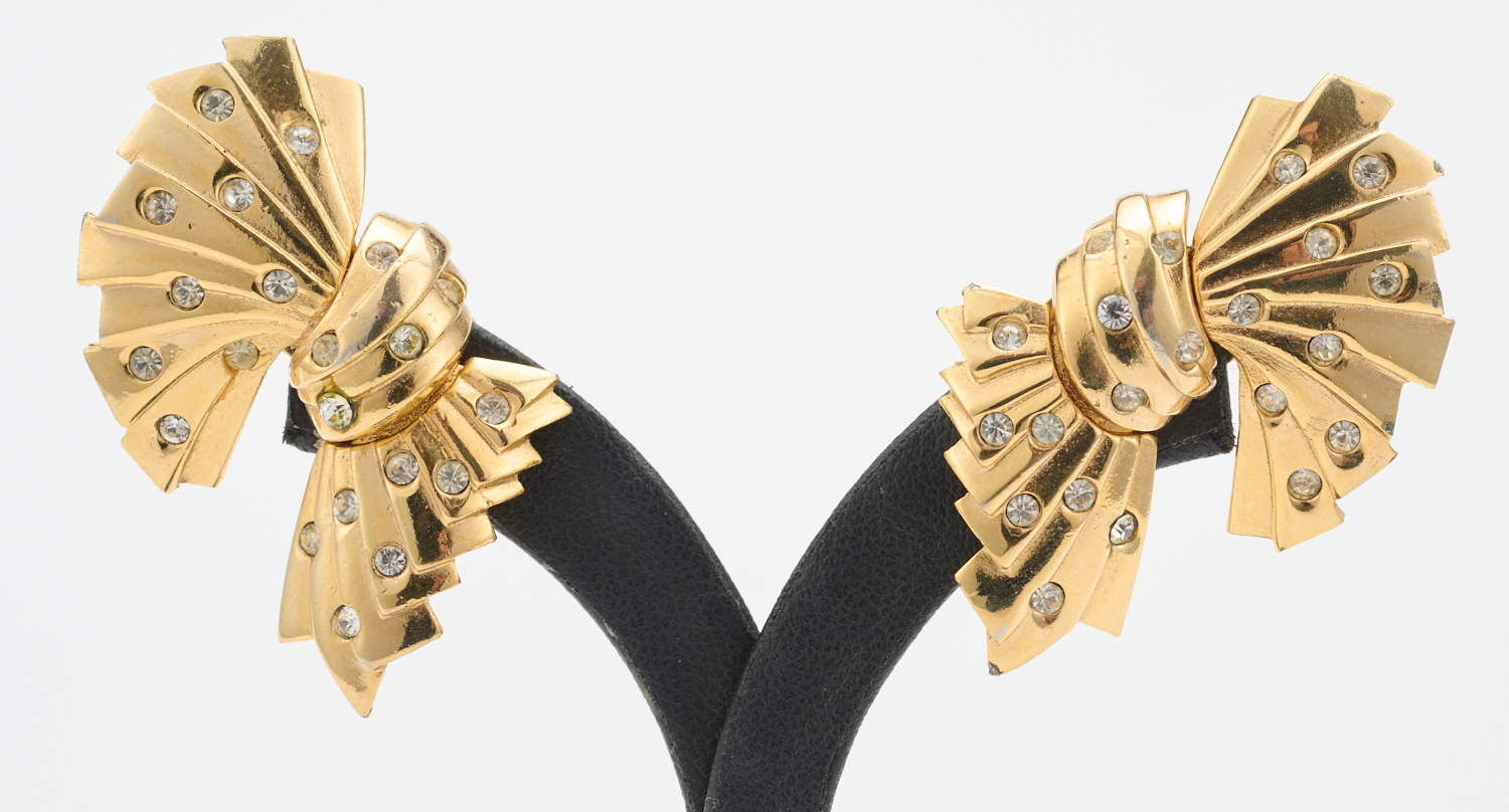 A PAIR OF BOW DESIGN EARRINGS BY GIVENCHY, FEATURING PASTE SET DETAILING, TO CLIP ON FITTINGS